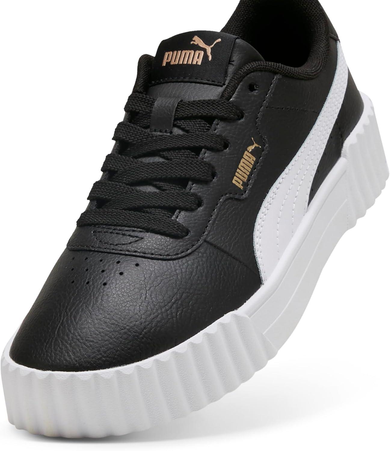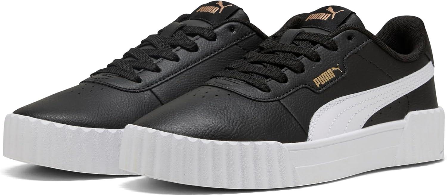 Step into timeless style and ultimate comfort with the PUMA Carina 3.0 Women's Sneakers, inspired by the classic '80s tennis aesthetic. These fashion sneakers effortlessly combine vintage charm with modern updates, making them an essential addition to any wardrobe. Crafted from sleek leather and synthetic leather uppers, these white sneakers for women provide both durability and sophistication. The Softfoam+ sockliner offers superior cushioning and soft support with every step, ensuring your feet remain comfortable all day long. Ideal for a variety of settings, from running errands to casual outings with friends, the Carina 3.0 sneakers pair beautifully with a wide range of outfits. Whether you're opting for casual jeans or a polished look, these shoes will elevate your style. The rubber outsole ensures reliable traction, making them a practical choice for everyday wear. Additionally, the PUMA Formstrip branding and logo details add a sporty touch to these womens fashion sneakers. Environmentally conscious consumers will appreciate that the Carina 3.0 is made with at least 30% recycled materials, supporting sustainable production practices. With a clean, minimalist design, these womens tennis shoes not only enhance your wardrobe but also make an eco-friendly choice. Experience the perfect blend of style, comfort, and sustainability with the PUMA Carina 3.0 Women's Sneakers.