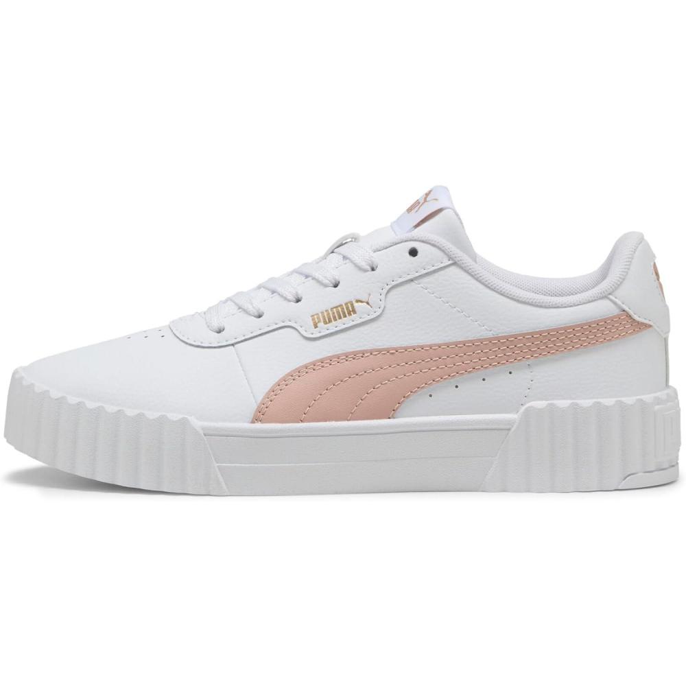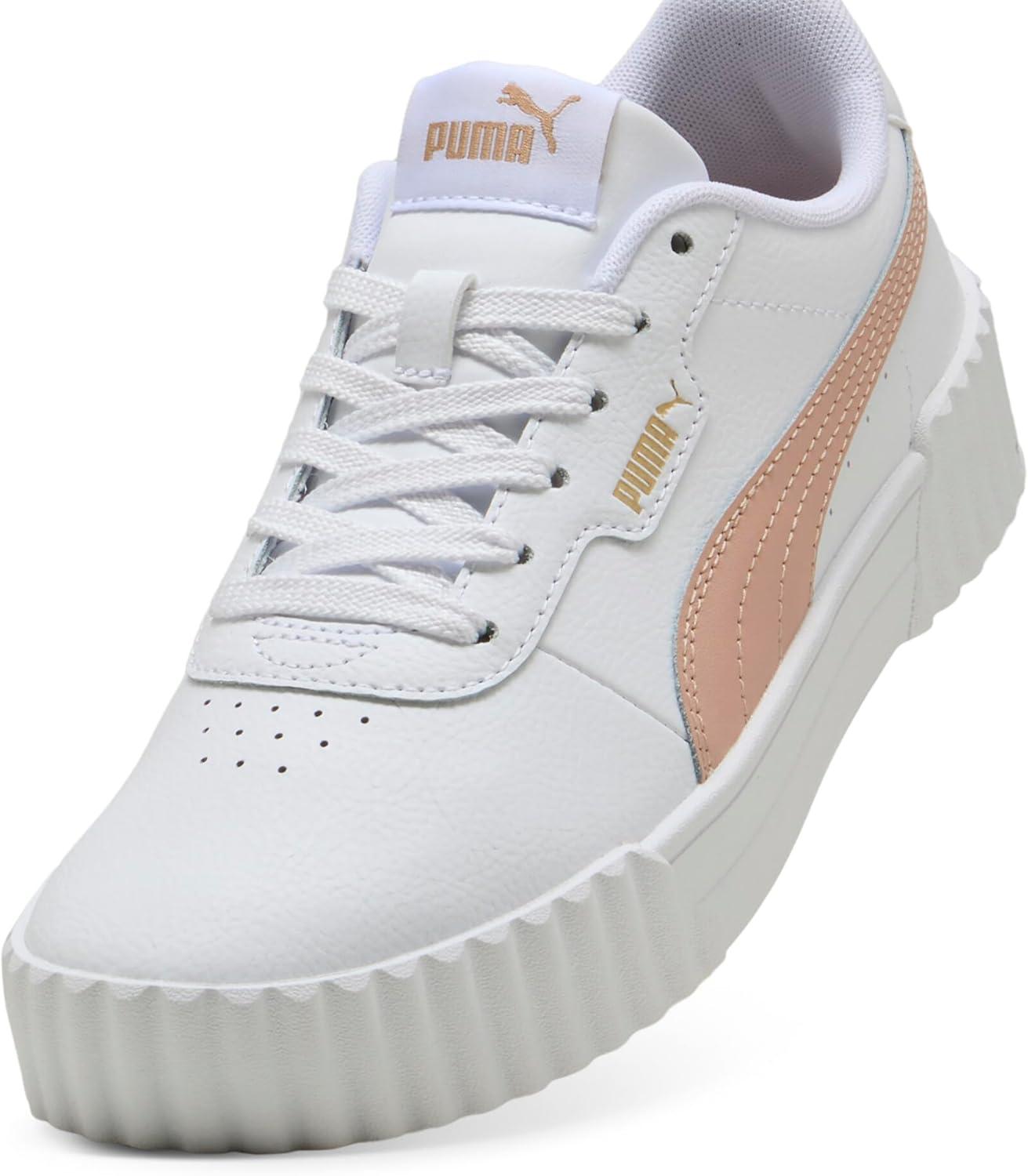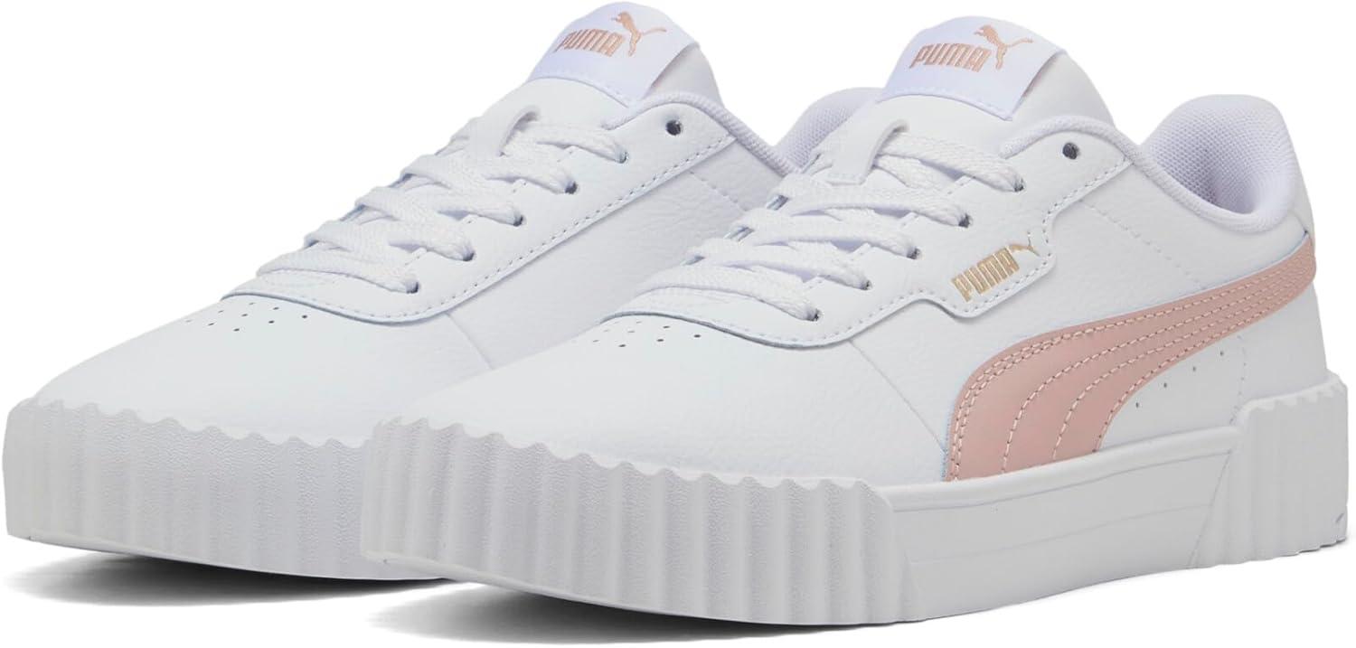Step into timeless style and ultimate comfort with the PUMA Carina 3.0 Women's Sneakers, inspired by the classic '80s tennis aesthetic. These fashion sneakers effortlessly combine vintage charm with modern updates, making them an essential addition to any wardrobe. Crafted from sleek leather and synthetic leather uppers, these white sneakers for women provide both durability and sophistication. The Softfoam+ sockliner offers superior cushioning and soft support with every step, ensuring your feet remain comfortable all day long. Ideal for a variety of settings, from running errands to casual outings with friends, the Carina 3.0 sneakers pair beautifully with a wide range of outfits. Whether you're opting for casual jeans or a polished look, these shoes will elevate your style. The rubber outsole ensures reliable traction, making them a practical choice for everyday wear. Additionally, the PUMA Formstrip branding and logo details add a sporty touch to these womens fashion sneakers. Environmentally conscious consumers will appreciate that the Carina 3.0 is made with at least 30% recycled materials, supporting sustainable production practices. With a clean, minimalist design, these womens tennis shoes not only enhance your wardrobe but also make an eco-friendly choice. Experience the perfect blend of style, comfort, and sustainability with the PUMA Carina 3.0 Women's Sneakers.