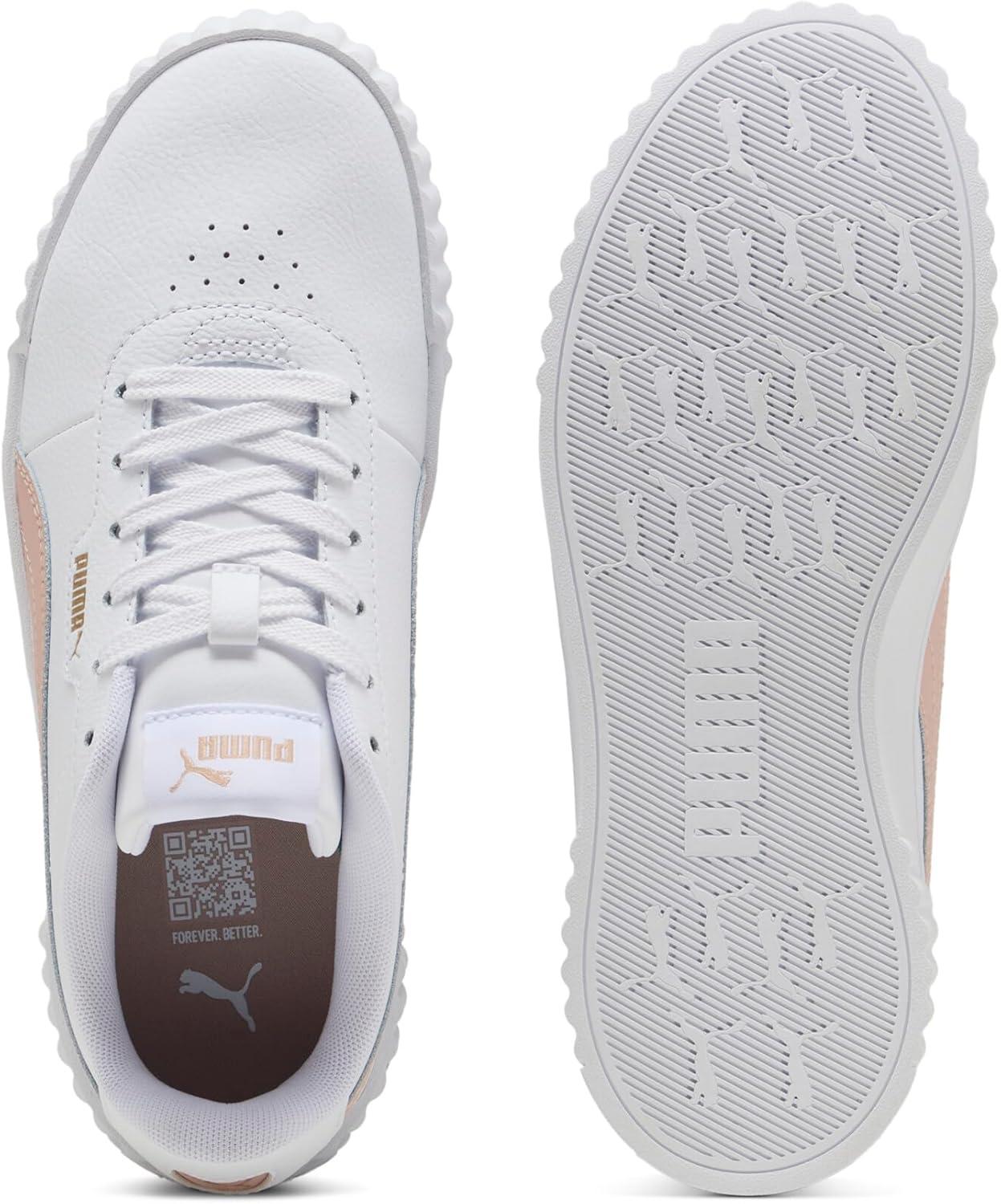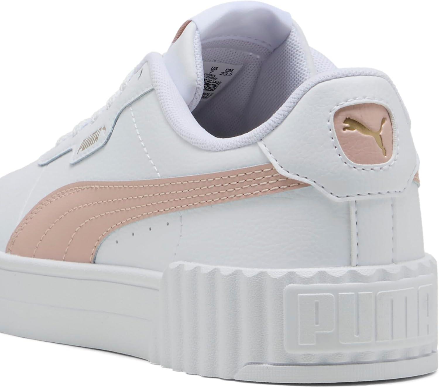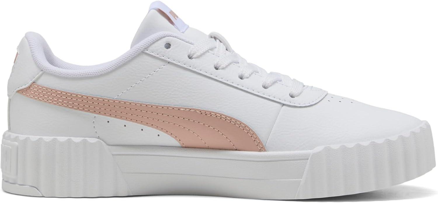 Step into timeless style and ultimate comfort with the PUMA Carina 3.0 Women's Sneakers, inspired by the classic '80s tennis aesthetic. These fashion sneakers effortlessly combine vintage charm with modern updates, making them an essential addition to any wardrobe. Crafted from sleek leather and synthetic leather uppers, these white sneakers for women provide both durability and sophistication. The Softfoam+ sockliner offers superior cushioning and soft support with every step, ensuring your feet remain comfortable all day long. Ideal for a variety of settings, from running errands to casual outings with friends, the Carina 3.0 sneakers pair beautifully with a wide range of outfits. Whether you're opting for casual jeans or a polished look, these shoes will elevate your style. The rubber outsole ensures reliable traction, making them a practical choice for everyday wear. Additionally, the PUMA Formstrip branding and logo details add a sporty touch to these womens fashion sneakers. Environmentally conscious consumers will appreciate that the Carina 3.0 is made with at least 30% recycled materials, supporting sustainable production practices. With a clean, minimalist design, these womens tennis shoes not only enhance your wardrobe but also make an eco-friendly choice. Experience the perfect blend of style, comfort, and sustainability with the PUMA Carina 3.0 Women's Sneakers.