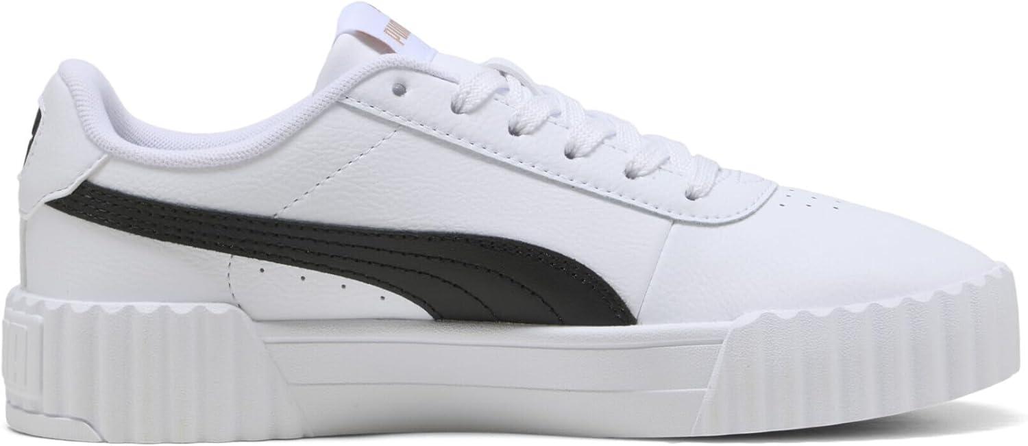 Step into timeless style and ultimate comfort with the PUMA Carina 3.0 Women's Sneakers, inspired by the classic '80s tennis aesthetic. These fashion sneakers effortlessly combine vintage charm with modern updates, making them an essential addition to any wardrobe. Crafted from sleek leather and synthetic leather uppers, these white sneakers for women provide both durability and sophistication. The Softfoam+ sockliner offers superior cushioning and soft support with every step, ensuring your feet remain comfortable all day long. Ideal for a variety of settings, from running errands to casual outings with friends, the Carina 3.0 sneakers pair beautifully with a wide range of outfits. Whether you're opting for casual jeans or a polished look, these shoes will elevate your style. The rubber outsole ensures reliable traction, making them a practical choice for everyday wear. Additionally, the PUMA Formstrip branding and logo details add a sporty touch to these womens fashion sneakers. Environmentally conscious consumers will appreciate that the Carina 3.0 is made with at least 30% recycled materials, supporting sustainable production practices. With a clean, minimalist design, these womens tennis shoes not only enhance your wardrobe but also make an eco-friendly choice. Experience the perfect blend of style, comfort, and sustainability with the PUMA Carina 3.0 Women's Sneakers.