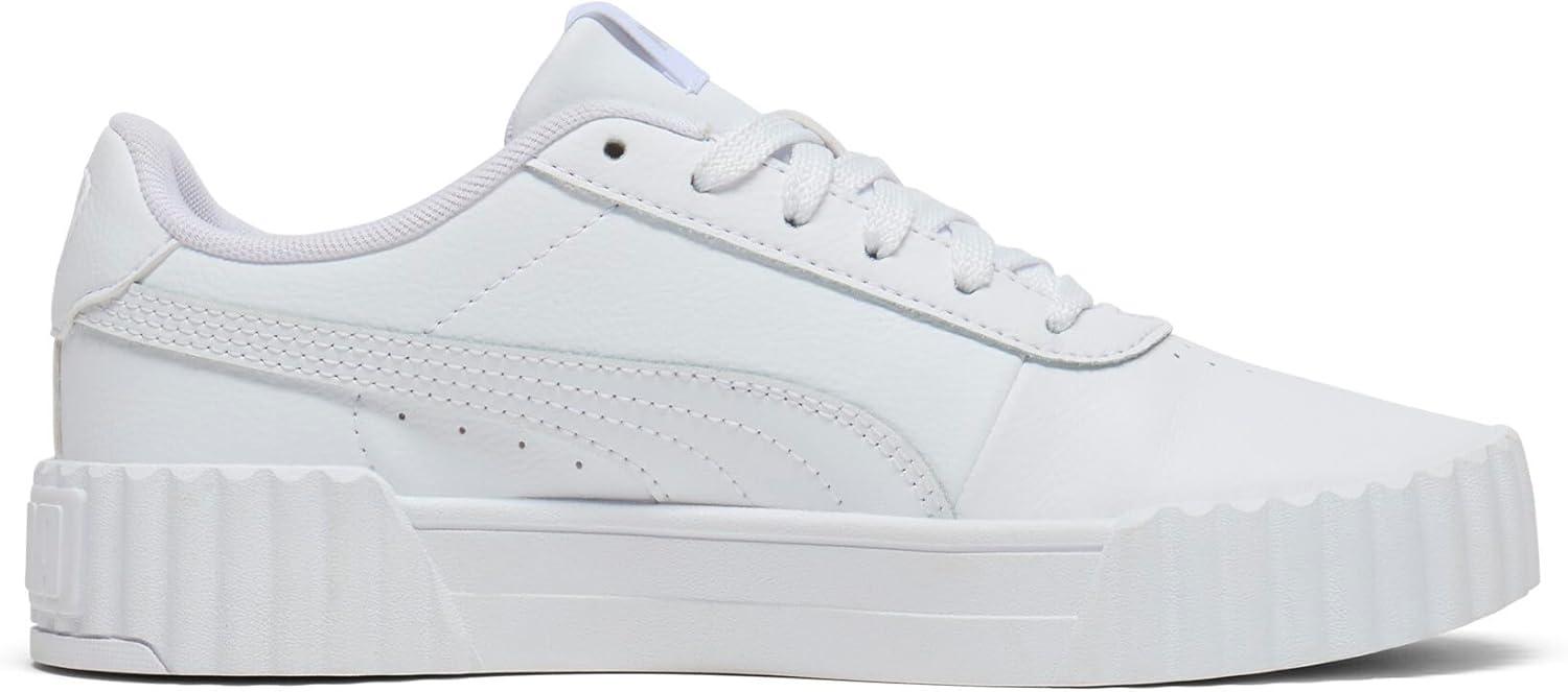 Step into timeless style and ultimate comfort with the PUMA Carina 3.0 Women's Sneakers, inspired by the classic '80s tennis aesthetic. These fashion sneakers effortlessly combine vintage charm with modern updates, making them an essential addition to any wardrobe. Crafted from sleek leather and synthetic leather uppers, these white sneakers for women provide both durability and sophistication. The Softfoam+ sockliner offers superior cushioning and soft support with every step, ensuring your feet remain comfortable all day long. Ideal for a variety of settings, from running errands to casual outings with friends, the Carina 3.0 sneakers pair beautifully with a wide range of outfits. Whether you're opting for casual jeans or a polished look, these shoes will elevate your style. The rubber outsole ensures reliable traction, making them a practical choice for everyday wear. Additionally, the PUMA Formstrip branding and logo details add a sporty touch to these womens fashion sneakers. Environmentally conscious consumers will appreciate that the Carina 3.0 is made with at least 30% recycled materials, supporting sustainable production practices. With a clean, minimalist design, these womens tennis shoes not only enhance your wardrobe but also make an eco-friendly choice. Experience the perfect blend of style, comfort, and sustainability with the PUMA Carina 3.0 Women's Sneakers.