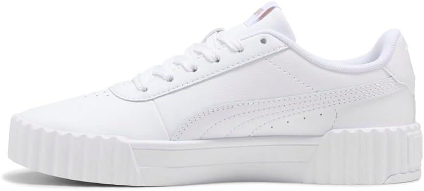 Step into timeless style and ultimate comfort with the PUMA Carina 3.0 Women's Sneakers, inspired by the classic '80s tennis aesthetic. These fashion sneakers effortlessly combine vintage charm with modern updates, making them an essential addition to any wardrobe. Crafted from sleek leather and synthetic leather uppers, these white sneakers for women provide both durability and sophistication. The Softfoam+ sockliner offers superior cushioning and soft support with every step, ensuring your feet remain comfortable all day long. Ideal for a variety of settings, from running errands to casual outings with friends, the Carina 3.0 sneakers pair beautifully with a wide range of outfits. Whether you're opting for casual jeans or a polished look, these shoes will elevate your style. The rubber outsole ensures reliable traction, making them a practical choice for everyday wear. Additionally, the PUMA Formstrip branding and logo details add a sporty touch to these womens fashion sneakers. Environmentally conscious consumers will appreciate that the Carina 3.0 is made with at least 30% recycled materials, supporting sustainable production practices. With a clean, minimalist design, these womens tennis shoes not only enhance your wardrobe but also make an eco-friendly choice. Experience the perfect blend of style, comfort, and sustainability with the PUMA Carina 3.0 Women's Sneakers.