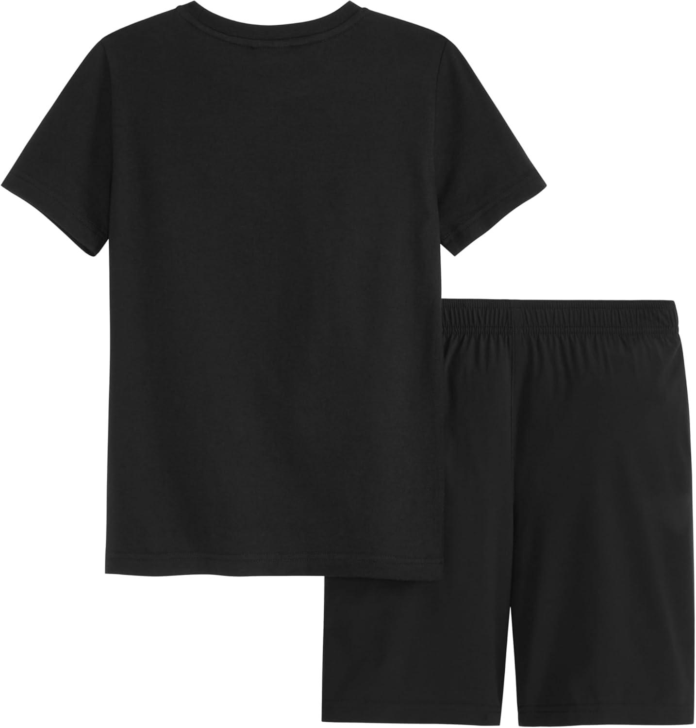 PUMA boys 2 Piece Set, Short Sleeve Cotton Jersey T-shirt & Matching Short(Puma Black)