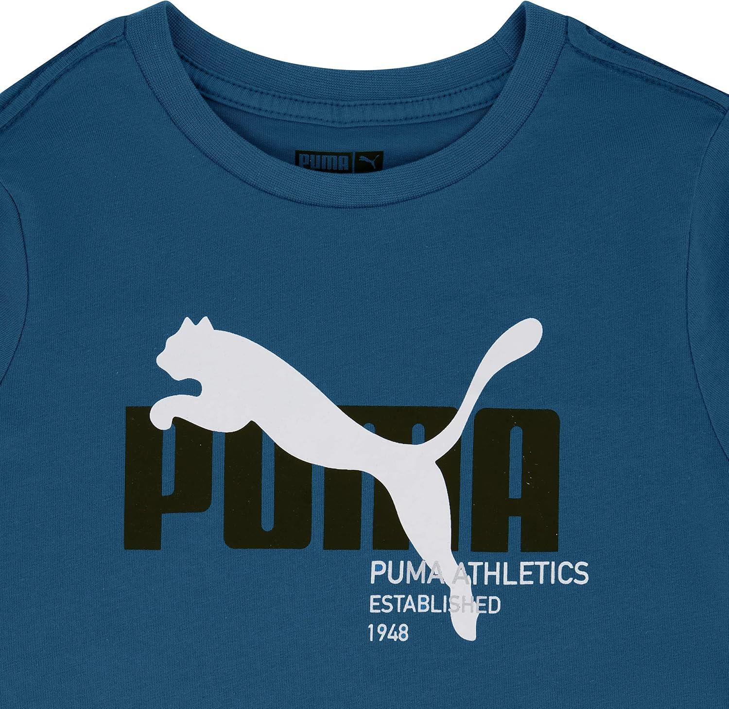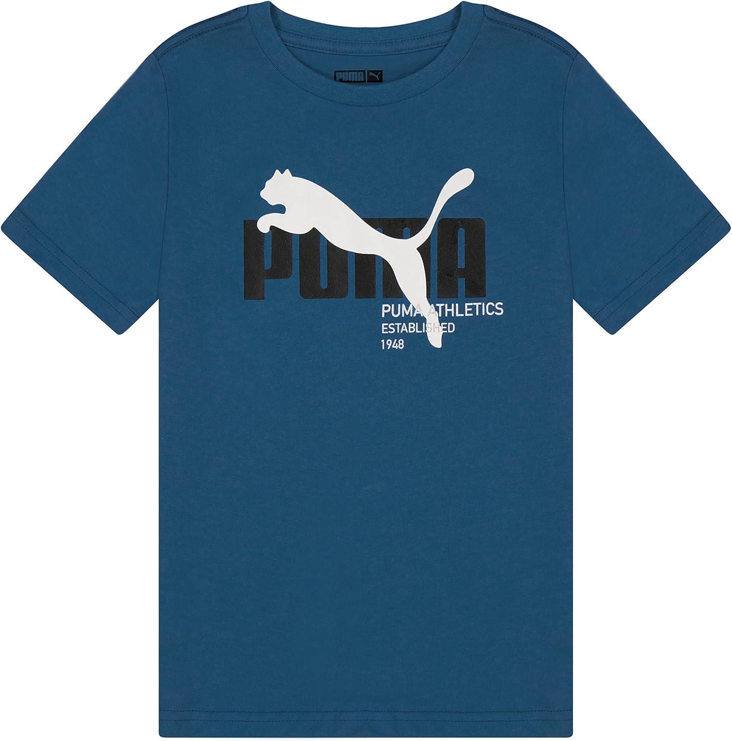 PUMA Boys’ Big Cat Logo T-Shirt(Mykonos Blue)
