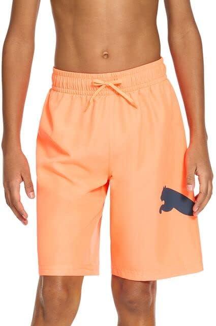 PUMA Boys’ Fashion Swim Trunks, Water Repellant, Elastic Waistband with Drawcord(Ultra Orange)