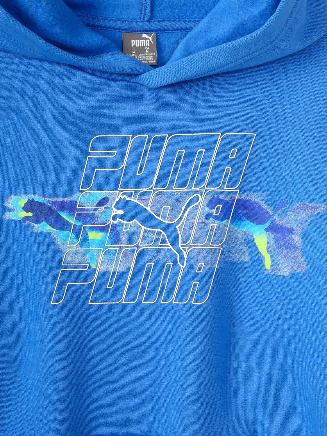 PUMA Boys' Logo Pullover Hoodie, Fleece Sweatshirt, Large Front Pocket(Hyperlink Blue)