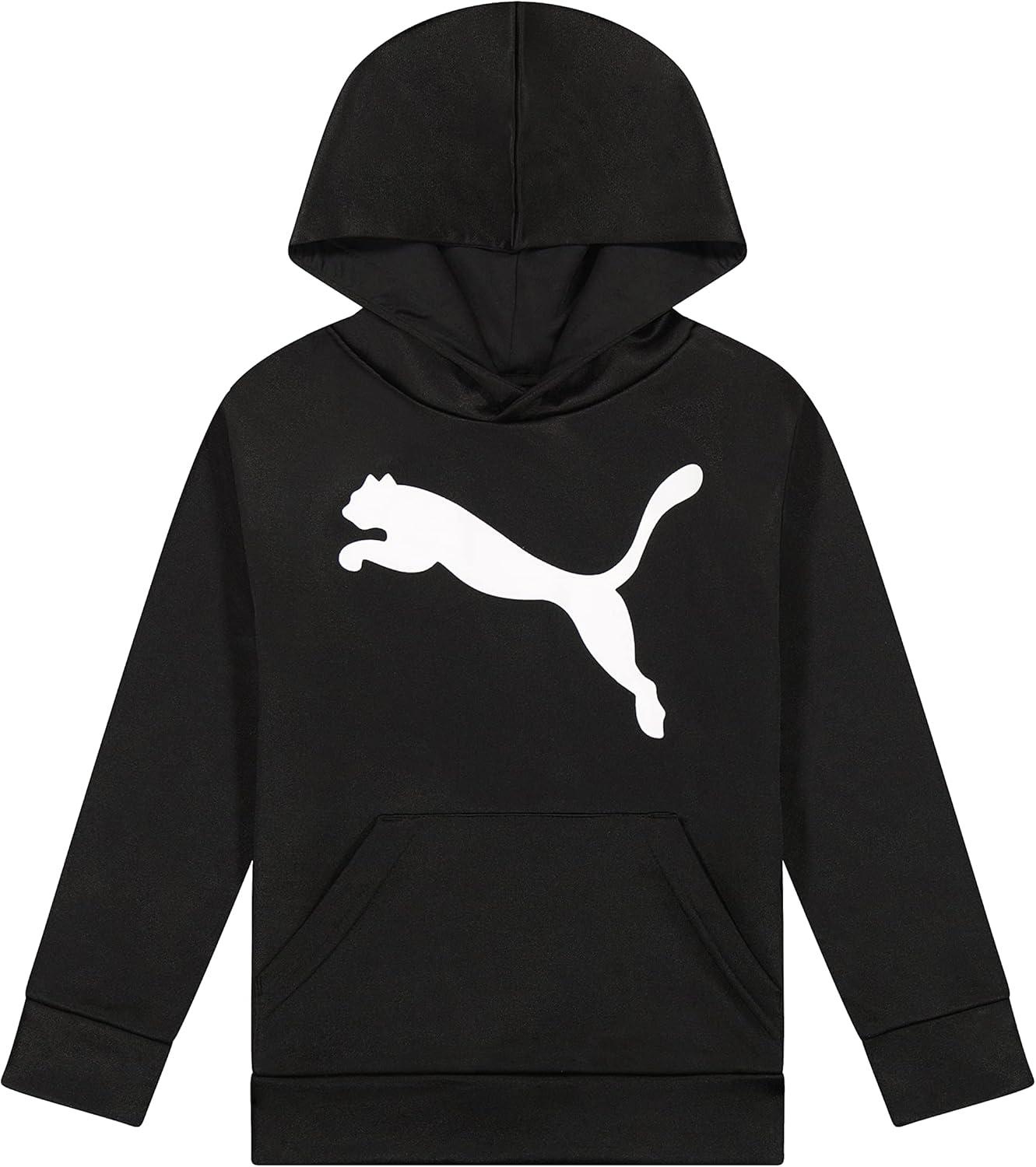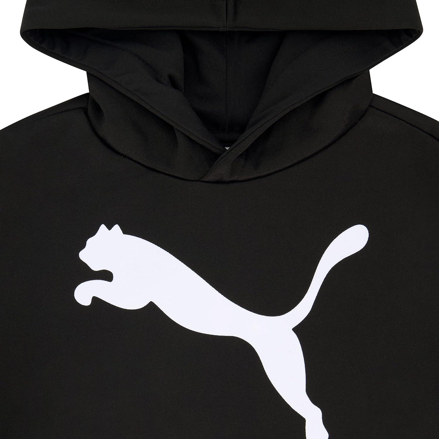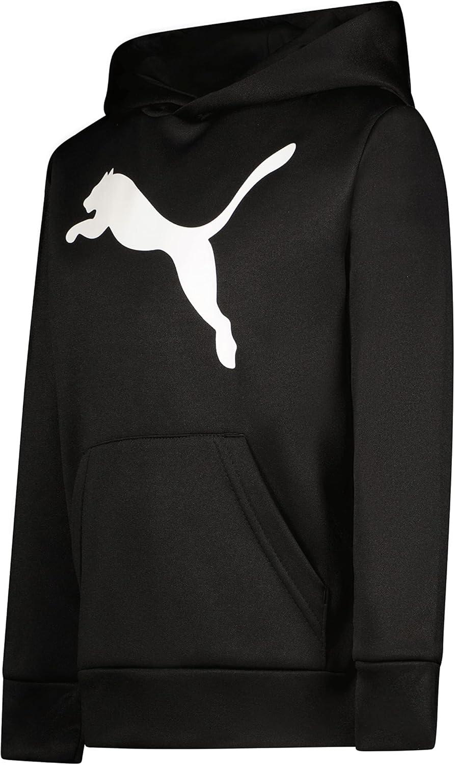 PUMA Boys' Logo Pullover Hoodie, Fleece Sweatshirt, Large Front Pocket(Puma Black)