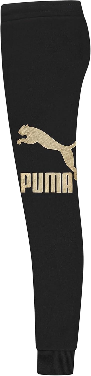 PUMA Girls' Core Logo Jogger, Fleece Lined, Elastic Waistband, Pull on Pant(Puma Black)