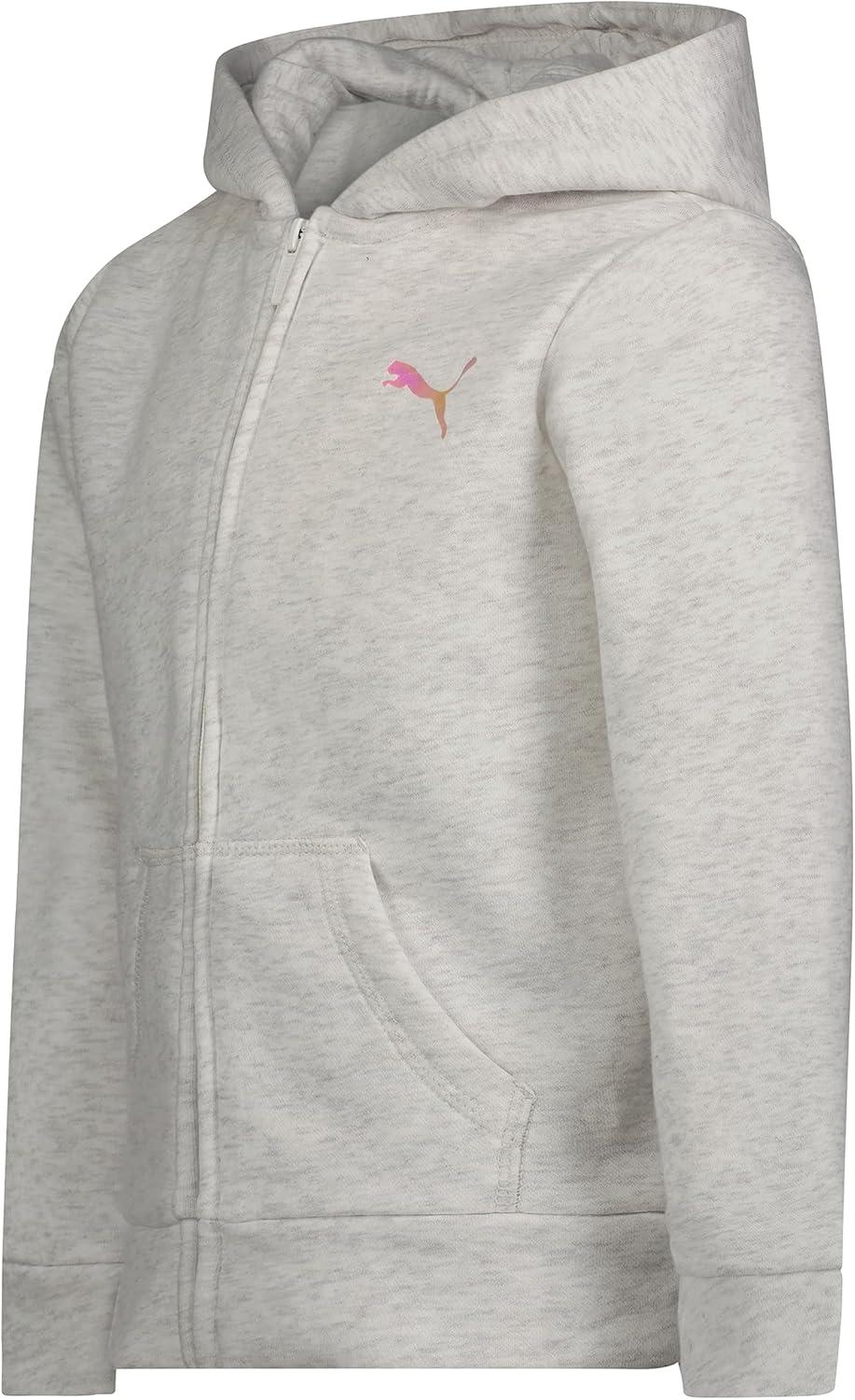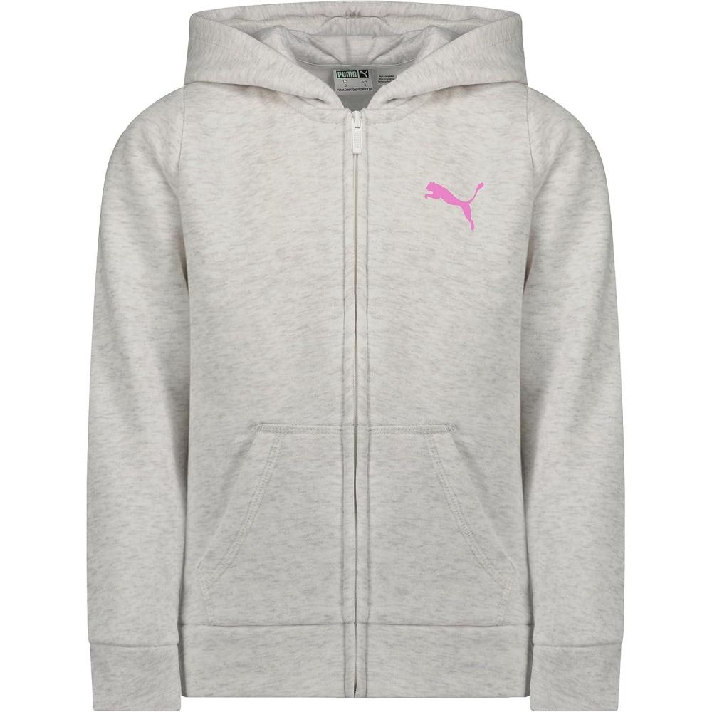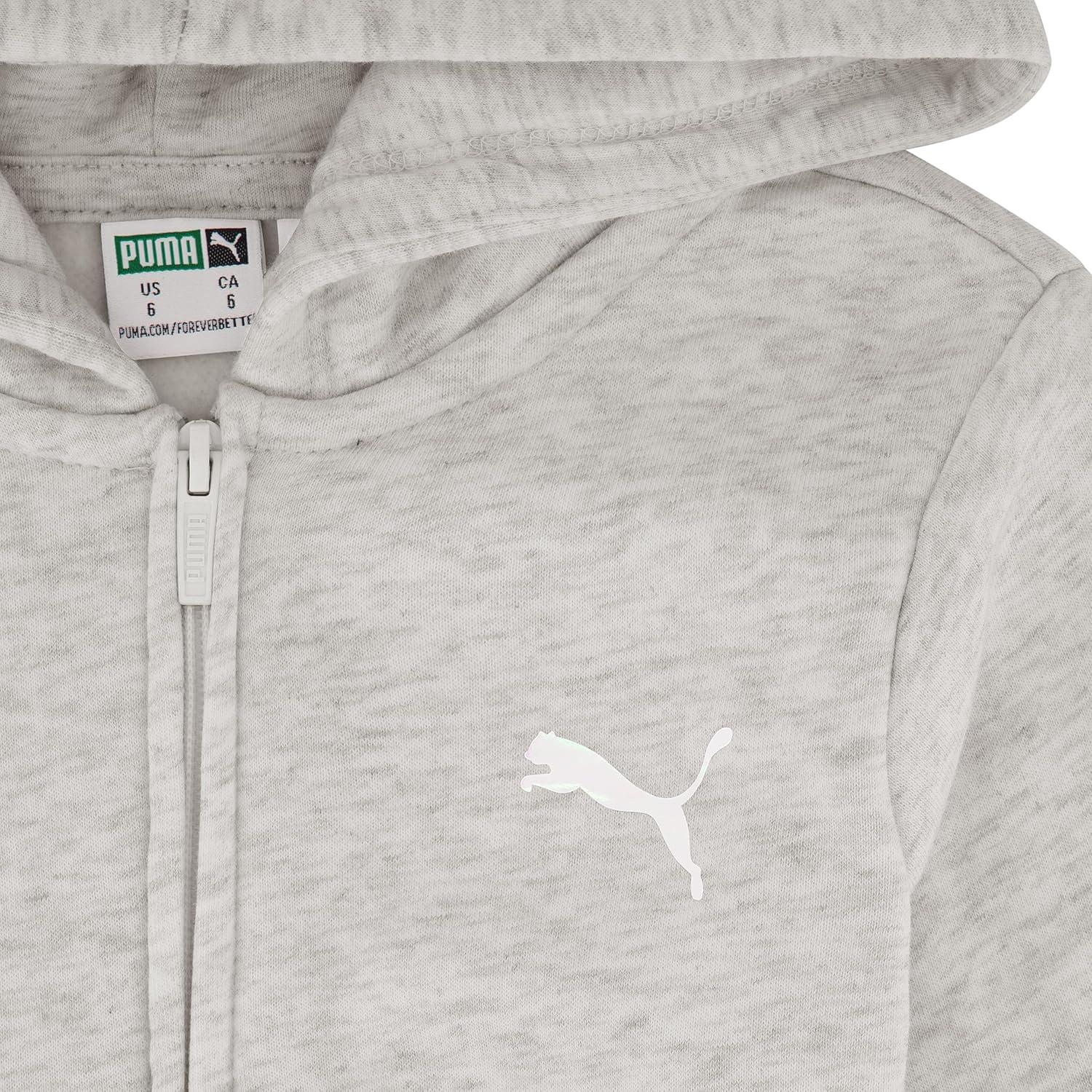 PUMA girls Core Logo Zip Up Hoodie(White Heather)