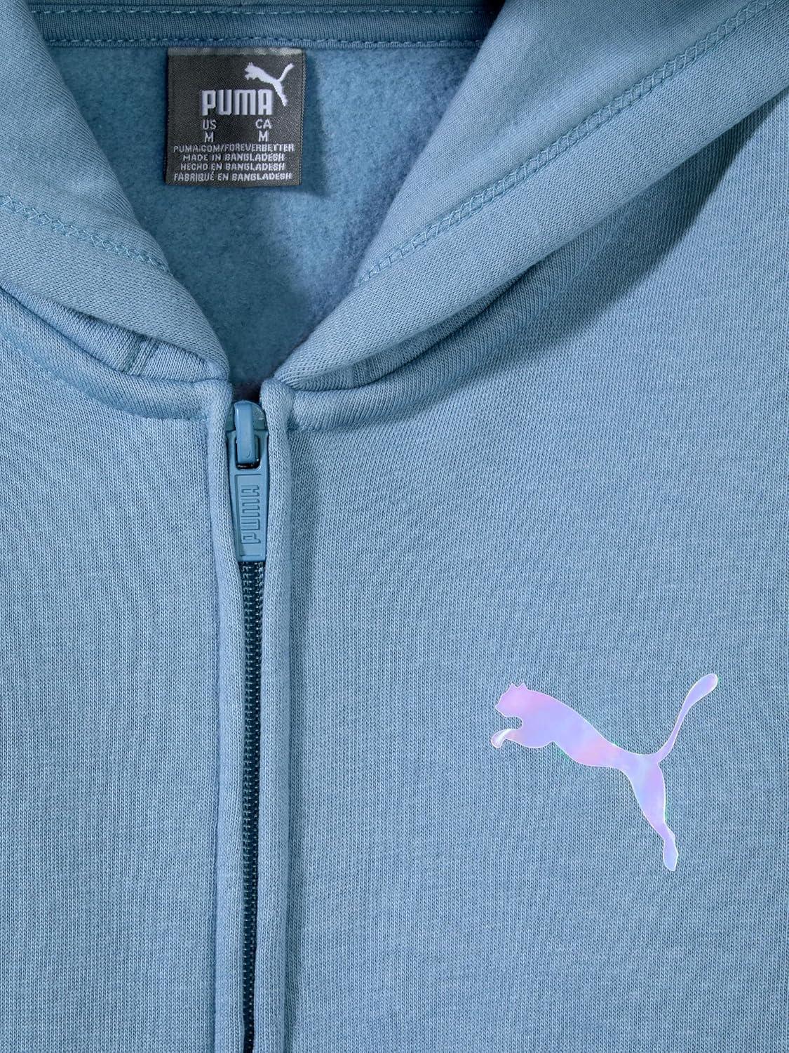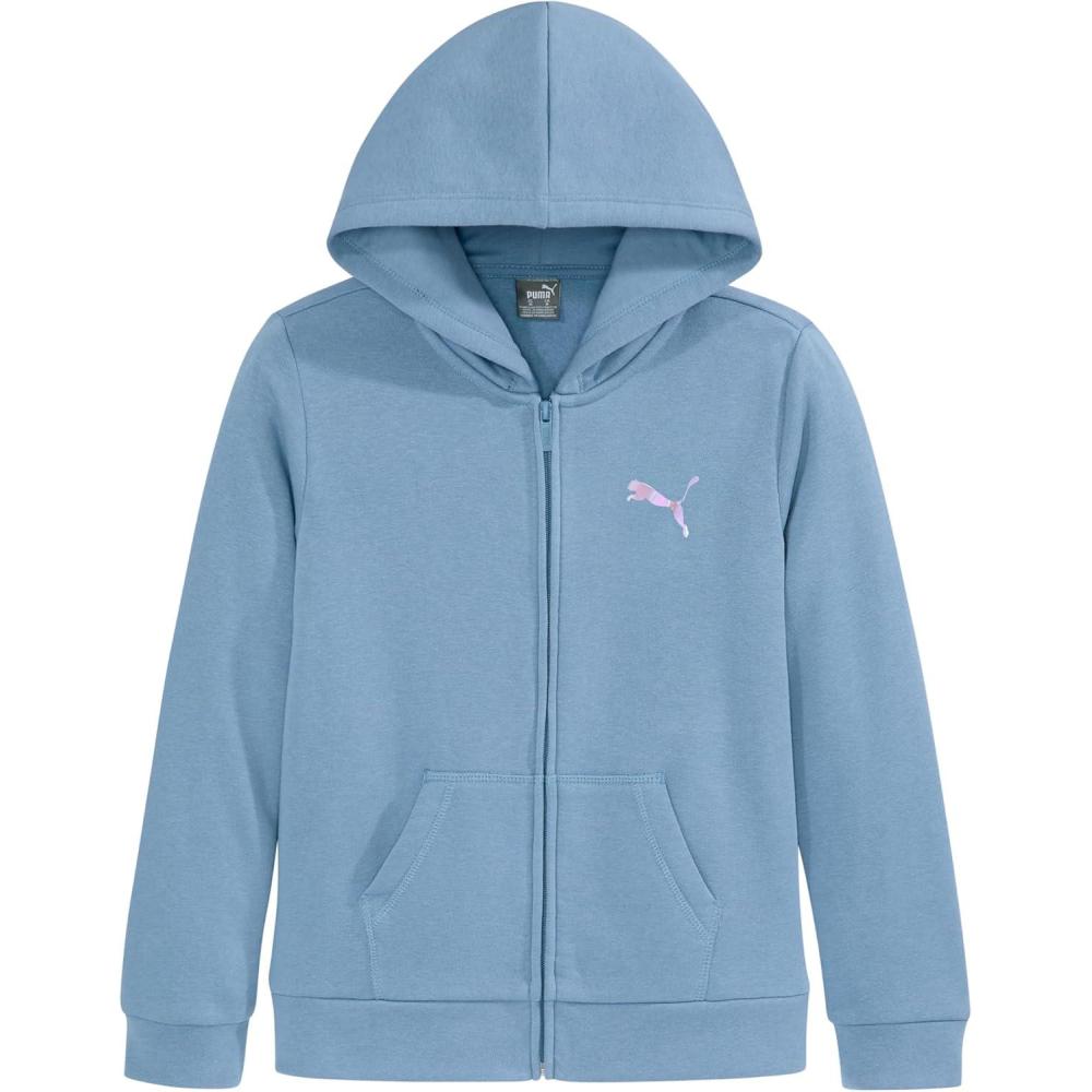 PUMA girls Core Logo Zip Up Hoodie(Zen Blue)