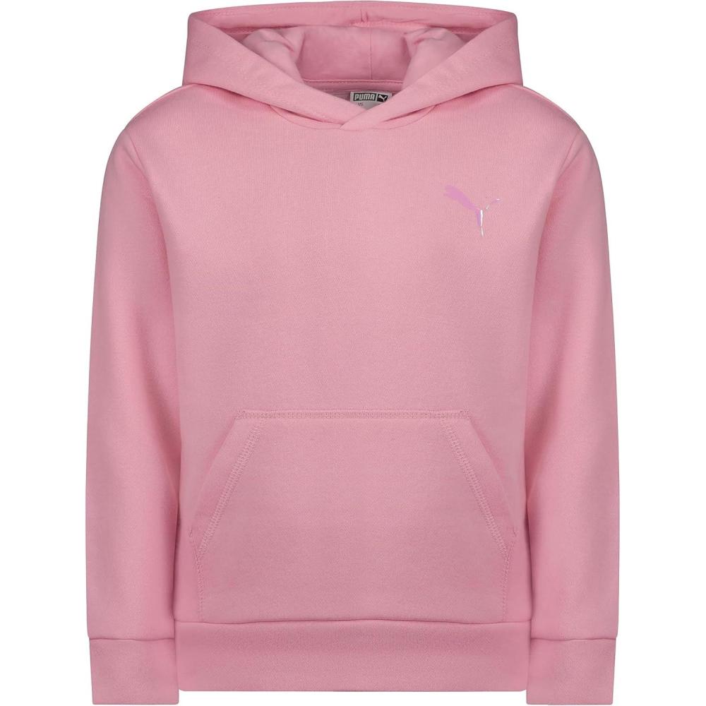 Introducing the PUMA Girls' Core Logo Fleece Pullover Hoodie , designed for ultimate comfort, style, and versatility for active girls. With the officially licensed screen printed PUMA logo and iconic leaping cat graphic at the forefront, this pullover hoodie is ready for growing girls to live in and layer on. This PUMA girls’ pullover hoodie is designed with a practical kangaroo front pocket and has cozy fleece lining for chilly days and a crossover front hood. Made of 60% Cotton and 40% Polyester, this hoodie is soft, comfortable, and fully machine-washable. PUMA, a Global athletic brand, provides consumers with innovative products that successfully fuses the creative influences from the world of sport, lifestyle, and fashion. Trust in PUMA's commitment to high-quality girls’ activewear and casual attire with this PUMA Girls' Core Logo Fleece Pullover Hoodie–perfect for sports and everyday fun!