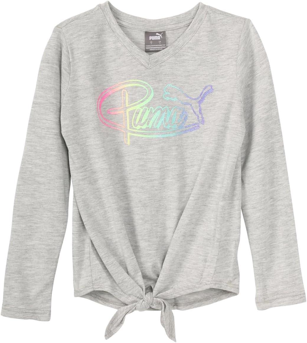 PUMA girls Long Sleeve Tee & Legging Set, Logo Graphics, Crewneck(Light Heather Grey)