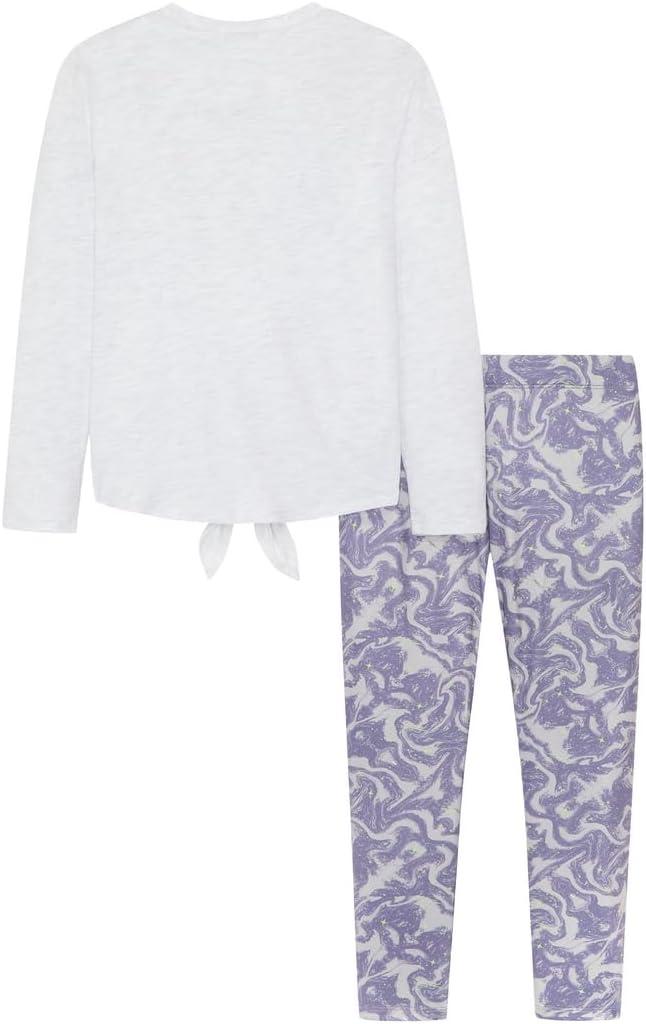 PUMA girls Long Sleeve Tee & Legging Set, Logo Graphics, Crewneck(White Heather)