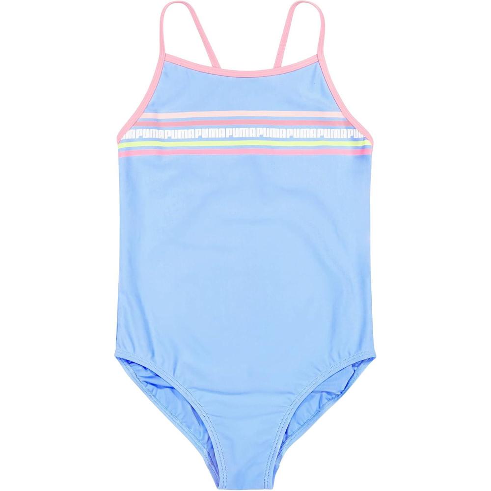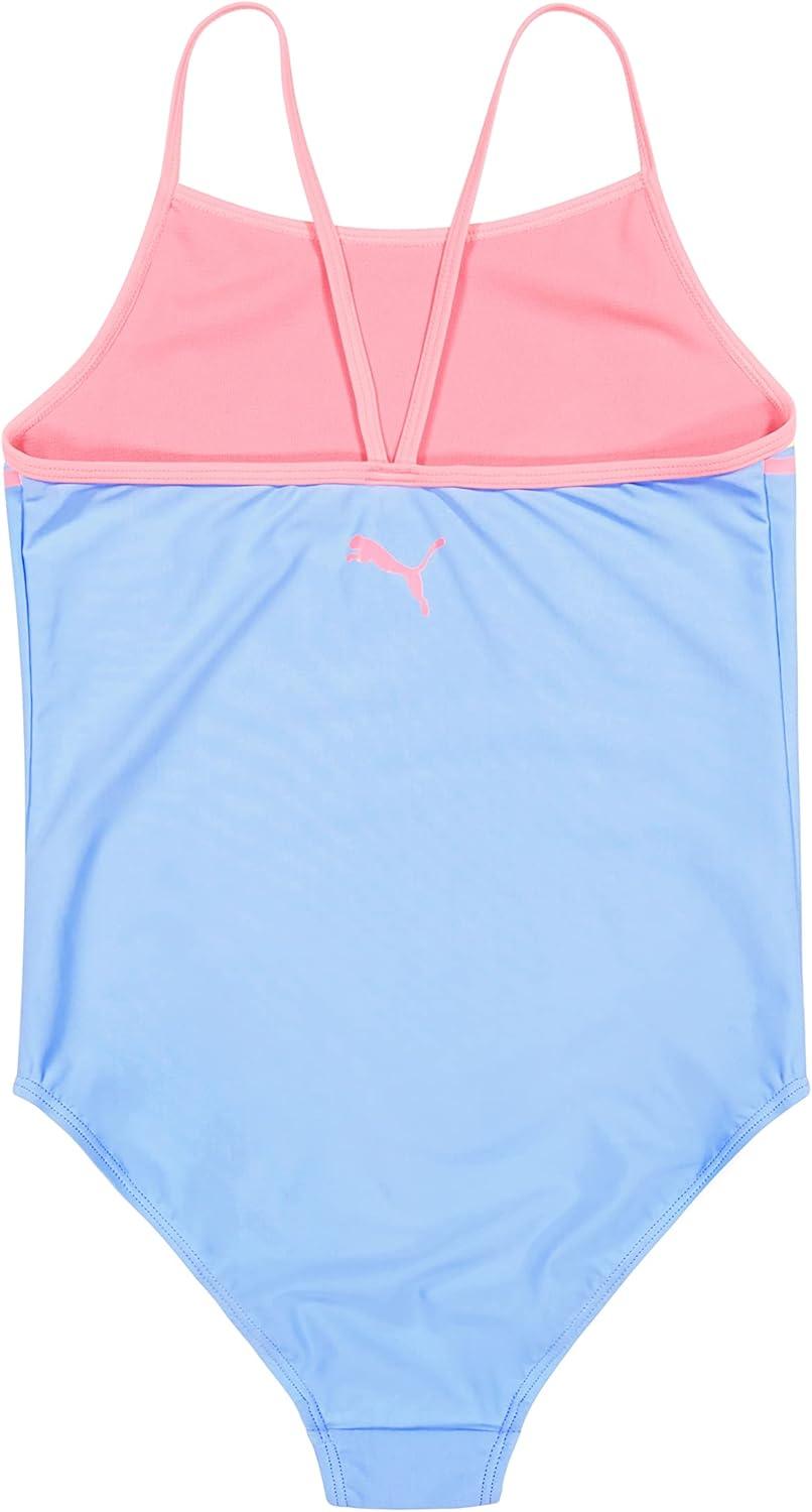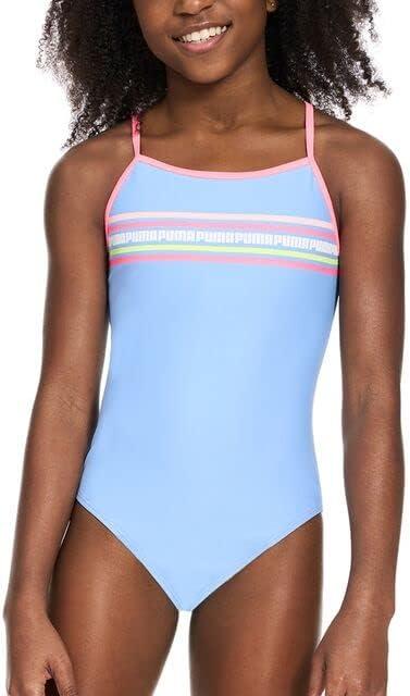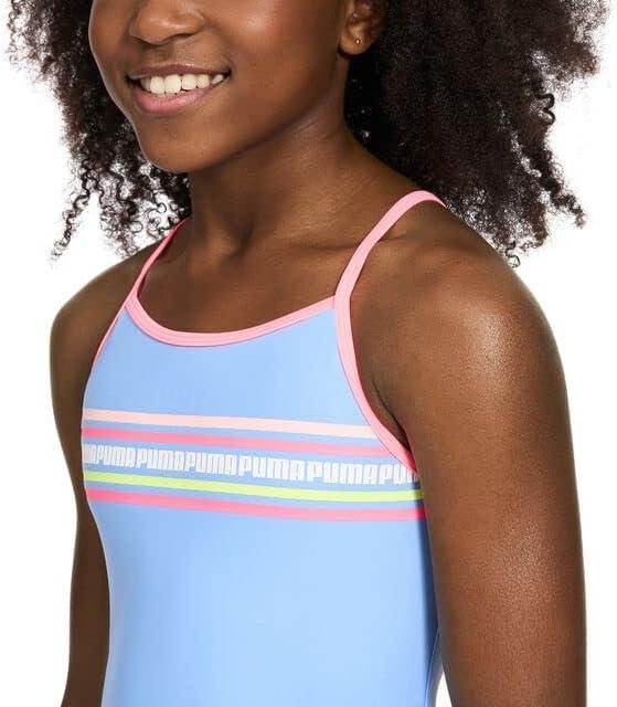 PUMA Girls’ One Piece Bathing Suit, Athletic Swimsuit, Quick Dry, Day Dream(Day Dream)