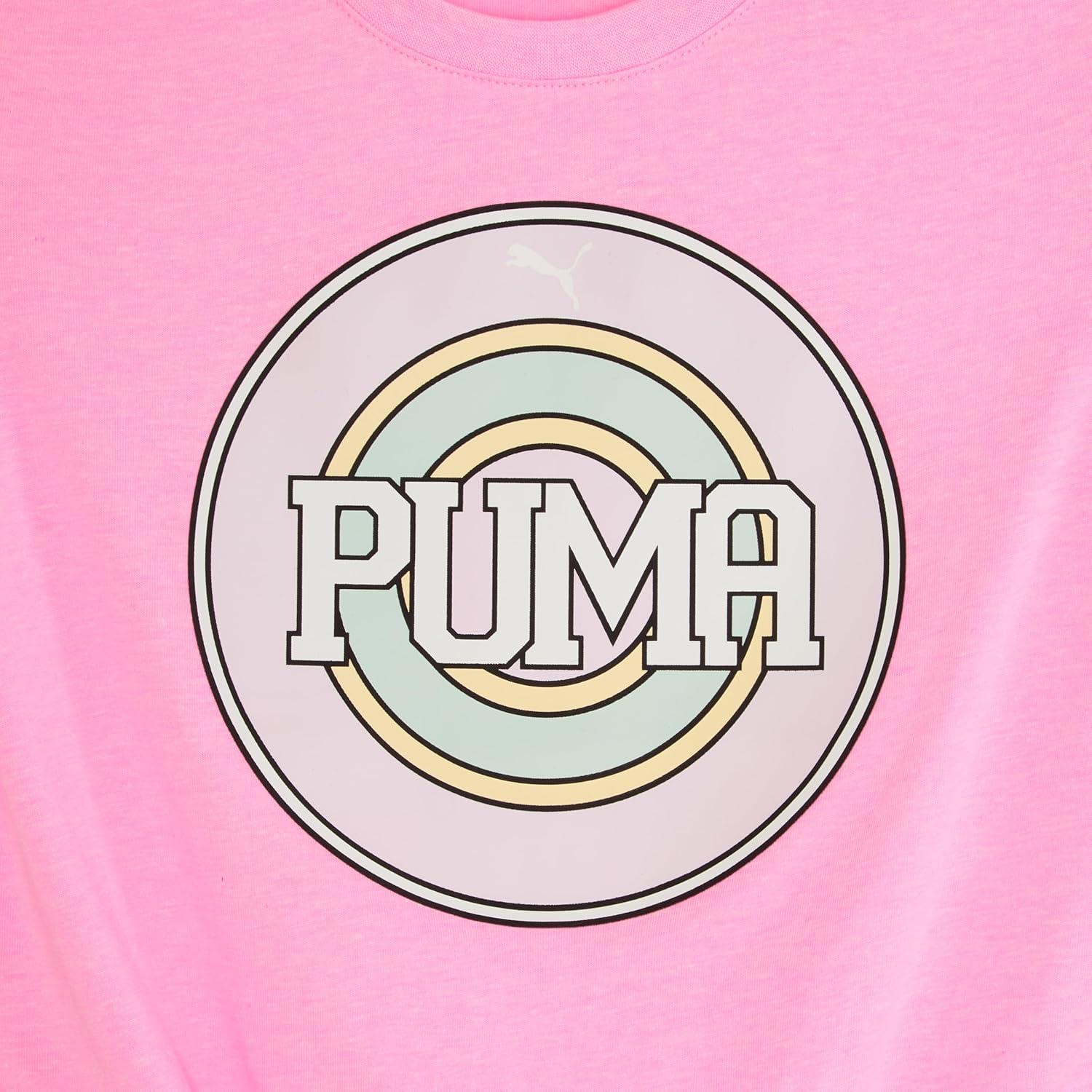 The PUMA Short Sleeve Tee and All-Over Print Legging 2-Piece Set in white heather is an adorable set for the changing seasons. They’ll love the look and feel of the jersey tee with sweetheart art and matching multi-colored leggings. Features a ribbed crew neck, tie front detail, slightly dropped shoulder seams, and a fold-over elastic waistband. It's super cute and super functional, which will quickly make this 2-piece set a wardrobe fave. Front twist on the tee adds extra cuteness to the look. The legging is perfect for sport, warm weather, and simple chilling out.