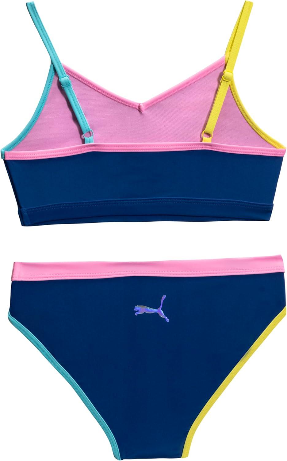 Dive into summer with the PUMA Girl's 2-Piece Bikini Swim Set. Designed for the active young swimmer, this stylish set blends performance and fashion. The stretch fabric ensures a snug, comfortable fit, while the quick-dry material keeps her ready for whatever adventure comes next. With vibrant contrast details and an iridescent foil logo, this bikini radiates fun, bold energy. Whether at the pool or on the beach, this set is perfect for all her sunny-day activities. Durable and eye-catching, the PUMA Bikini Swim Set brings confidence to every splash.