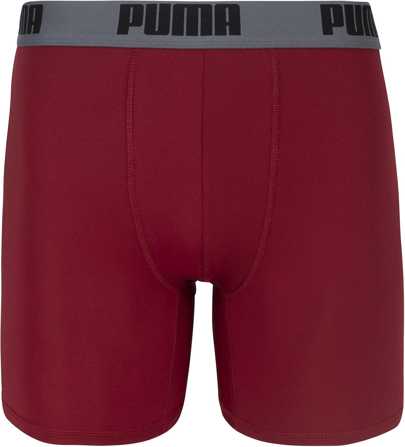 PUMA mens 3 Pack Performance Boxer Briefs(Red/Grey/Teal)