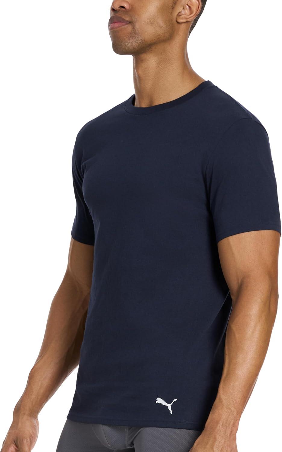 PUMA Men's 4 Pack Cotton Crewneck Short Sleeve T-Shirt(Black/Grey/White/Navy)