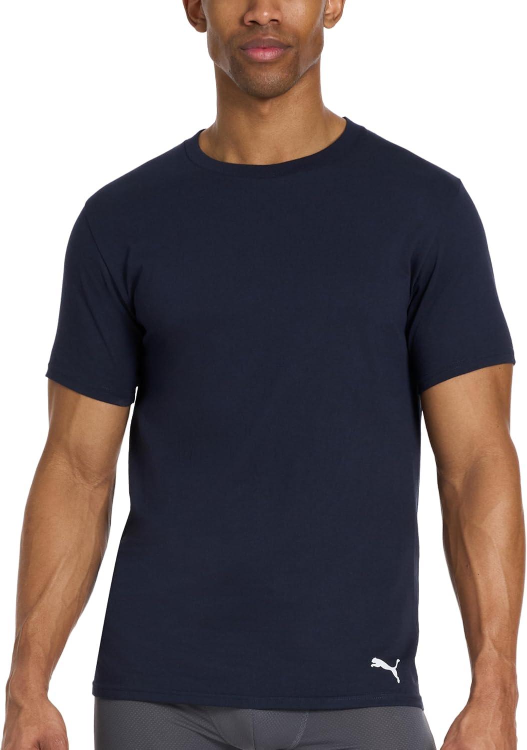 PUMA Men’s 4 Pack Cotton Crewneck Short Sleeve T-Shirt(Black/Grey/White/Navy)