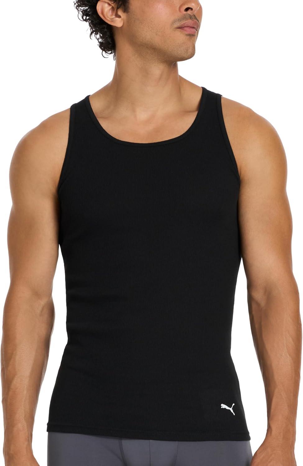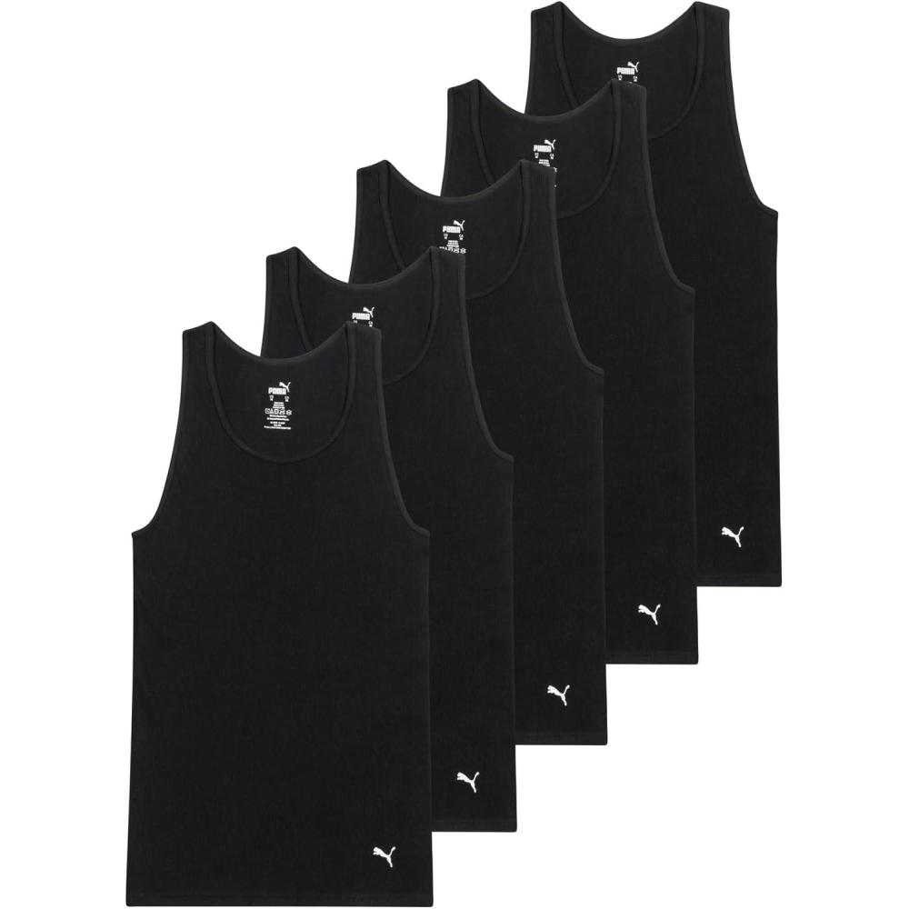 PUMA Men’s 5 Pack Cotton Rib Tank Top(Black)