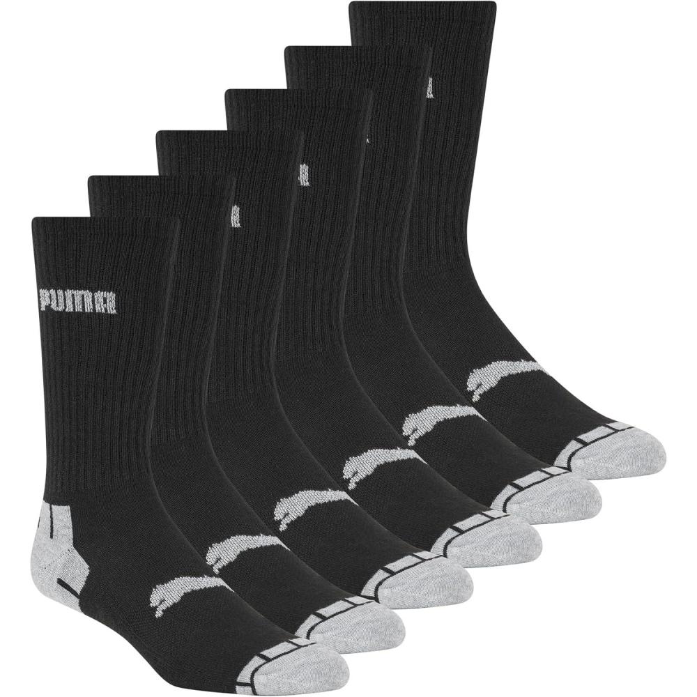 PUMA mens 6 Pack Crew Socks(Black/Gray)