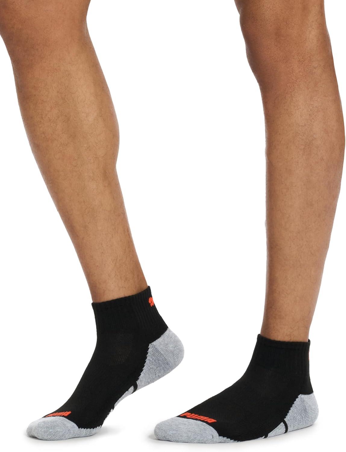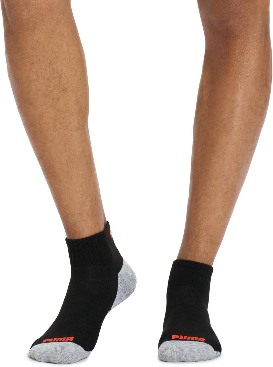 PUMA mens 6 Pack Quarter Crew Socks(Black)