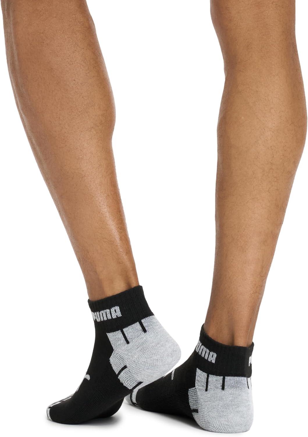 PUMA mens 6 Pack Quarter Crew Socks(Black/Grey)