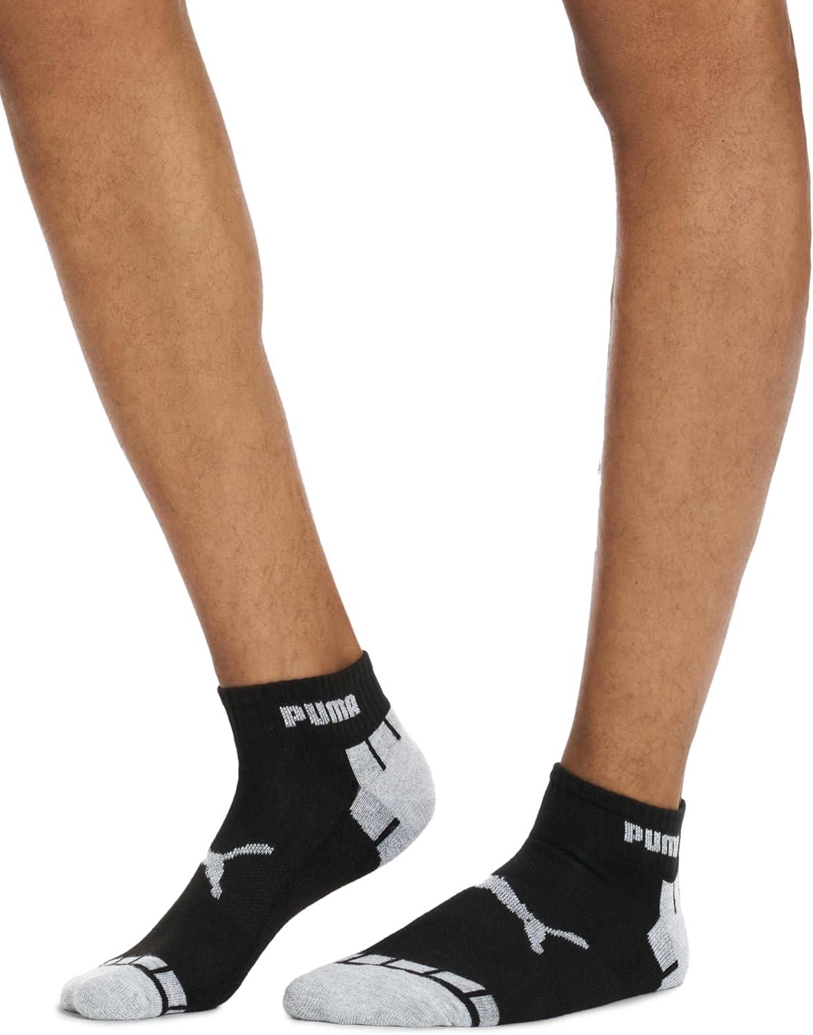 PUMA mens 6 Pack Quarter Crew Socks(Black/Grey Combo)