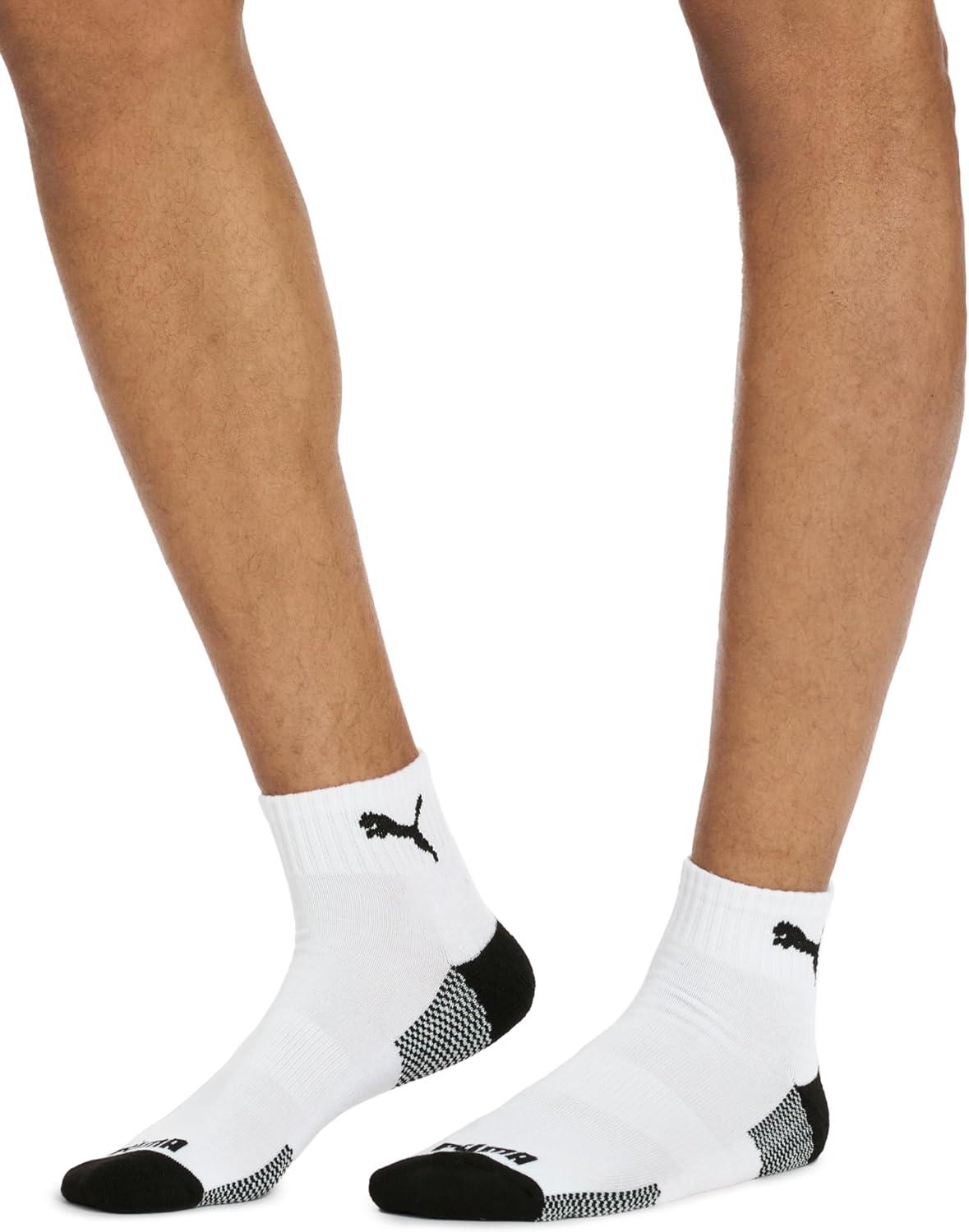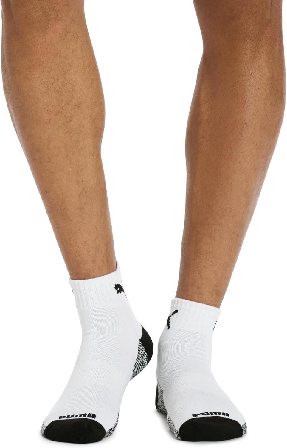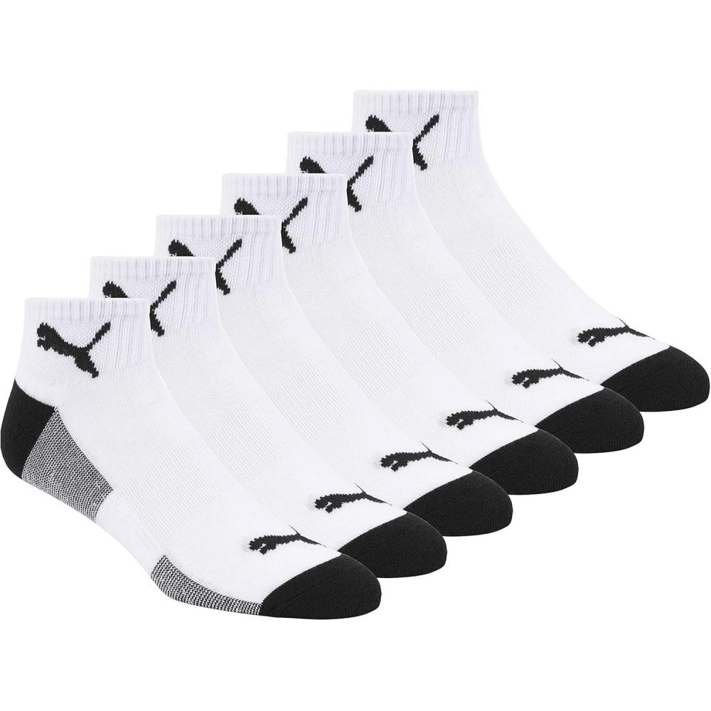 PUMA mens 6 Pack Quarter Crew Socks(White/Black)
