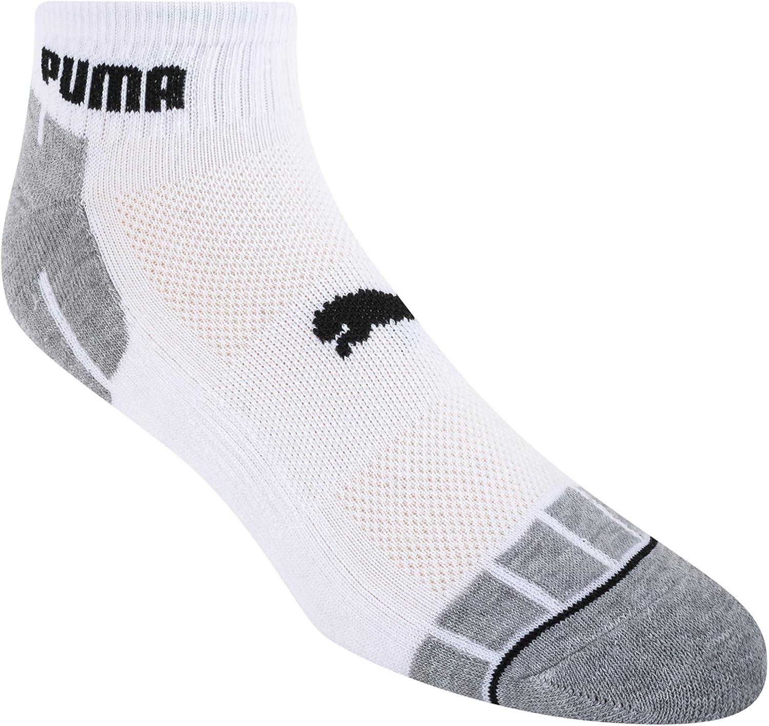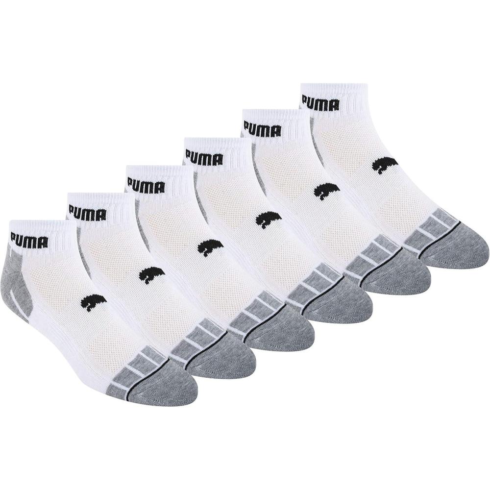 PUMA mens 6 Pack Quarter Crew Socks(White/Grey Detail)