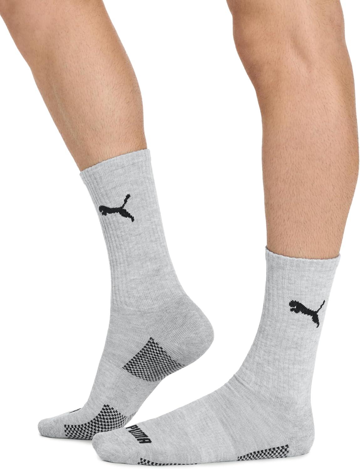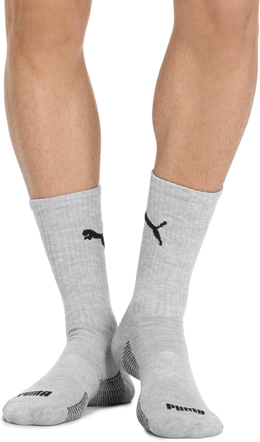 PUMA Men’s 8 Pack Athletic Cushioned Crew Socks(White/Grey)
