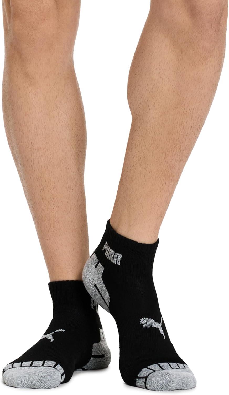 PUMA Mens 8 Pack Athletic Cushioned Quarter Crew Socks(Black/Grey)