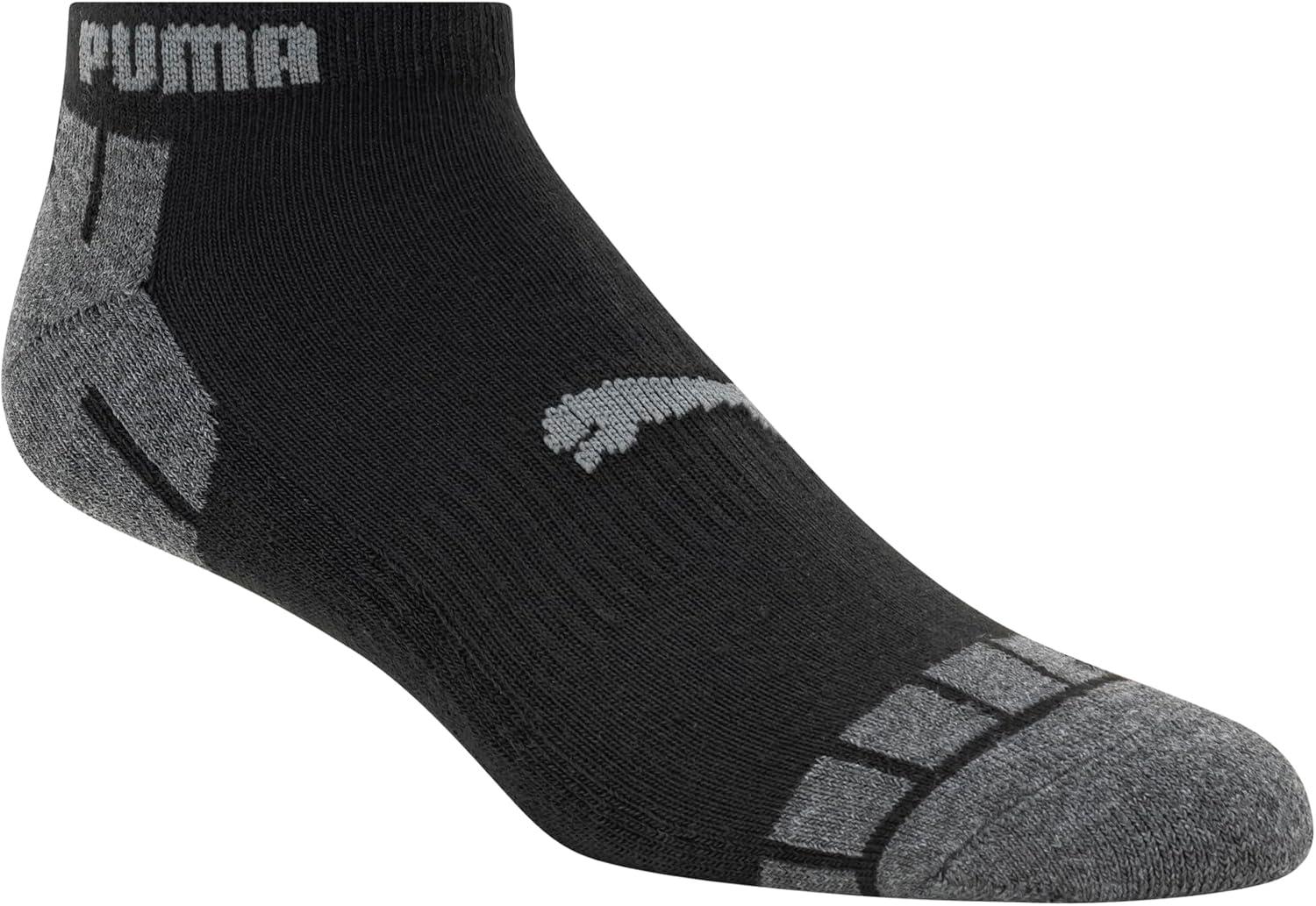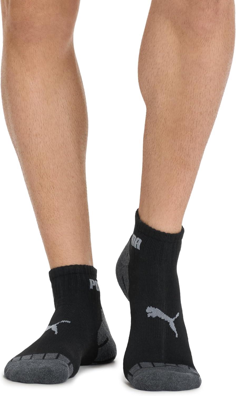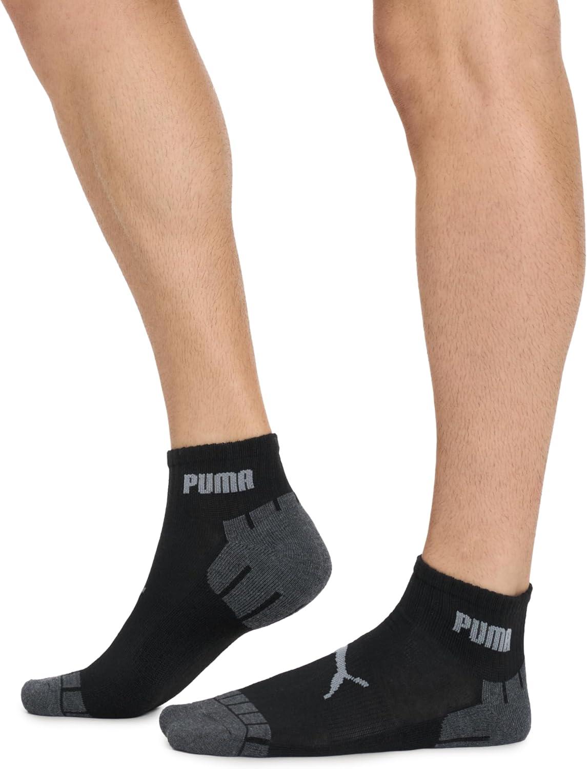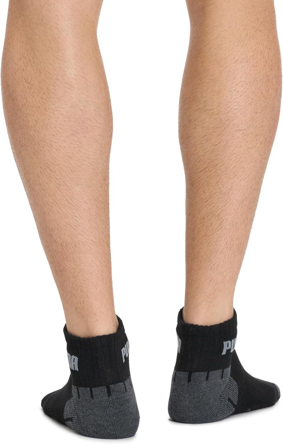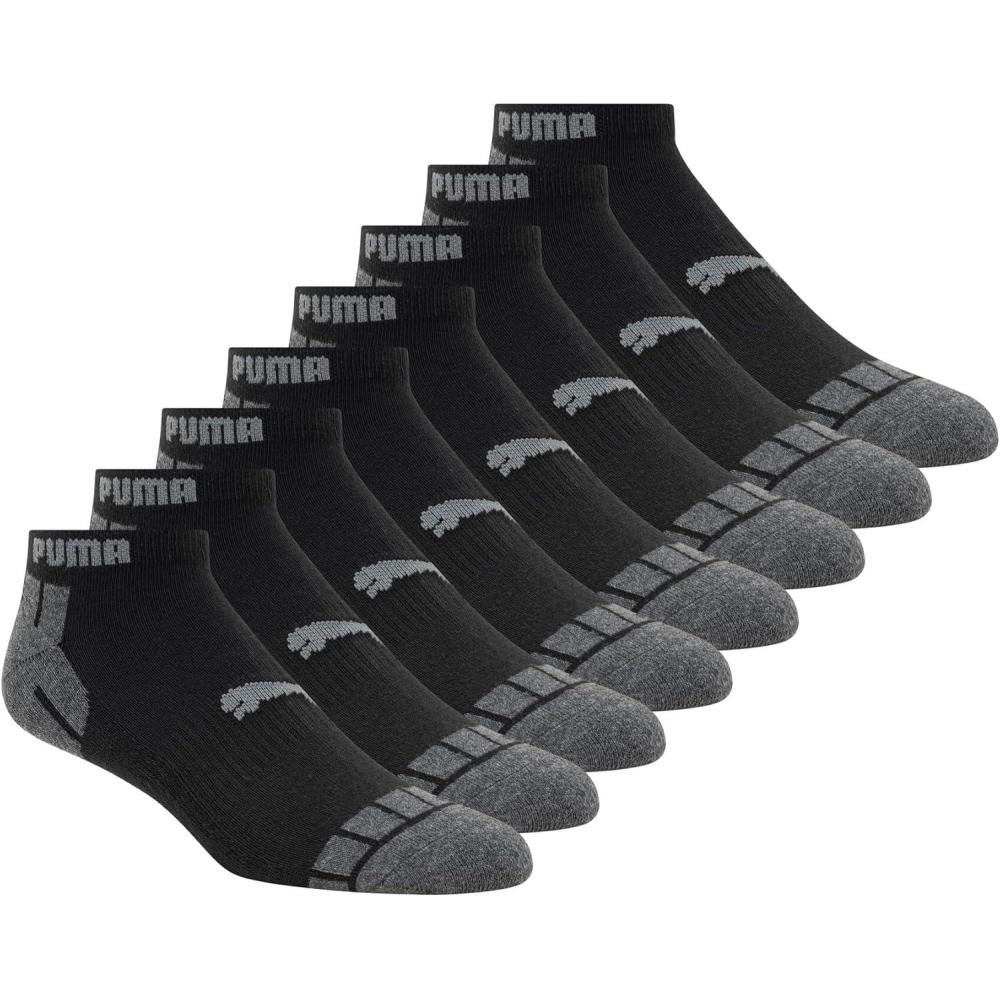 PUMA Mens 8 Pack Athletic Cushioned Quarter Crew Socks(Black/Grey)