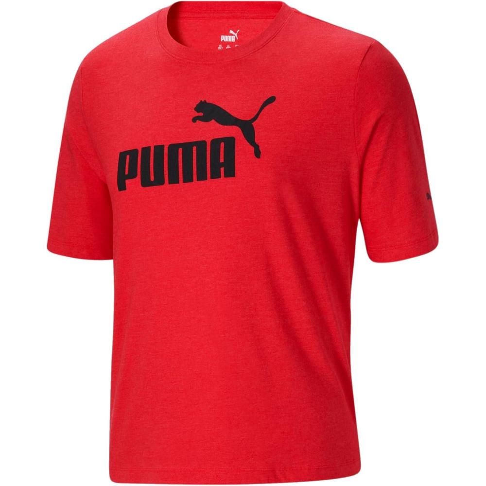 PUMA Men's Essentials Logo Tee, Grey, Standard Length, Classic Fit, Short Sleeve, Cotton 100%, T-Shirt, Sports, 586253-07(High Risk Red Heather)