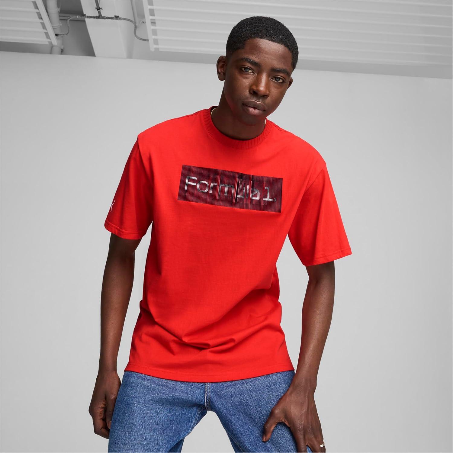 This Graphic Tee features a mixed print execution of formula 1 and PUMA logo on frontPUMA Cat logo print.