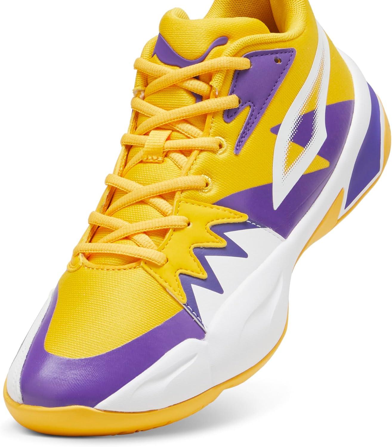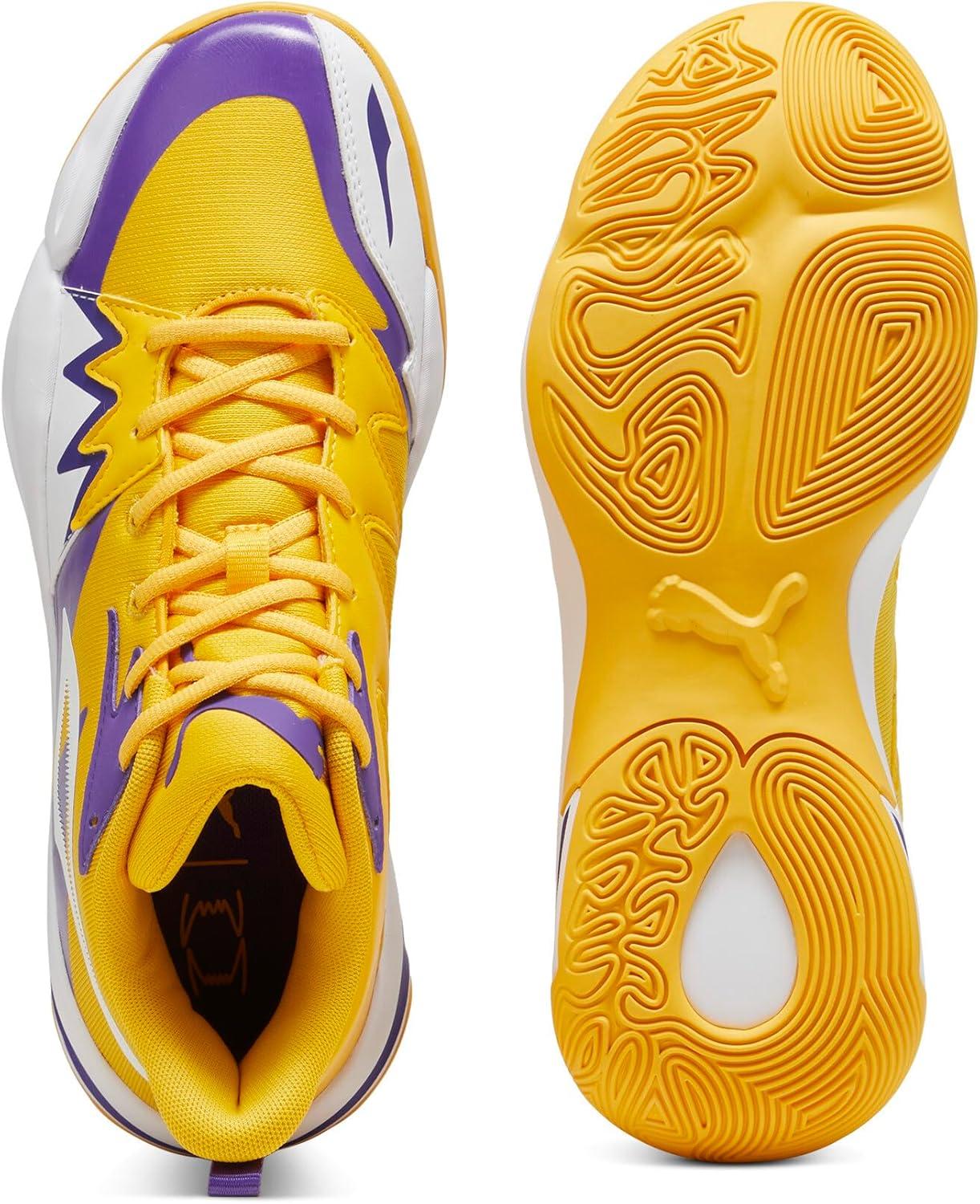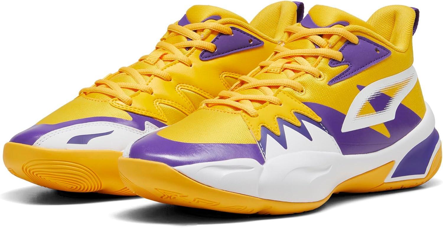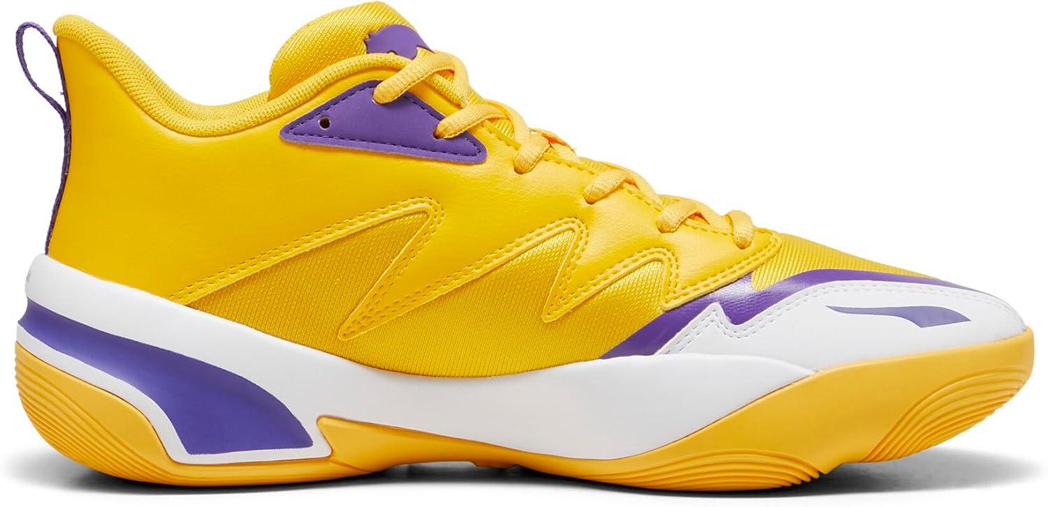 PUMA Men’s Genetics Basketball Shoes, Black-for All Time Red, 14(Yellow Sizzle-white)