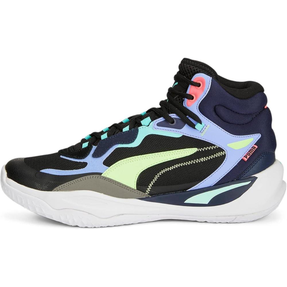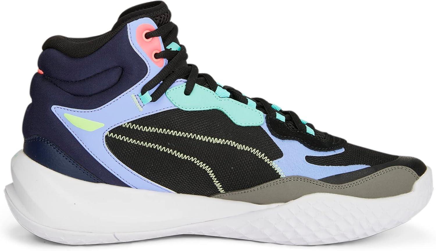 PUMA Men’s Playmaker Pro Mid Sneaker(Black-persian Blue-fire Orchid-ultra Blue)