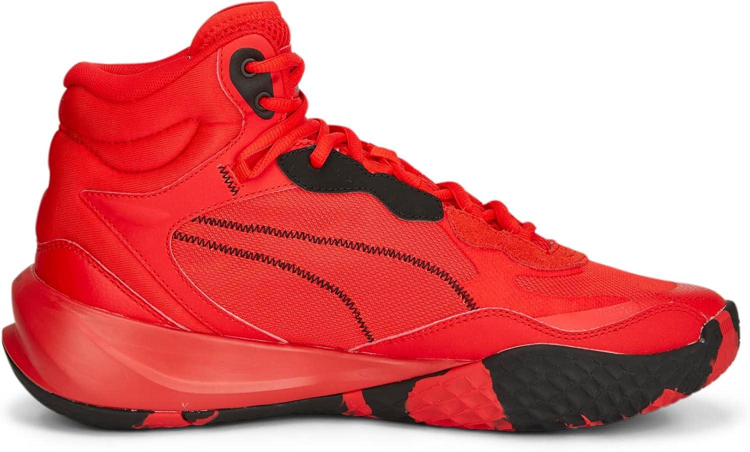 PUMA Men’s Playmaker Pro Mid Sneaker(High Risk Red Jet Black)