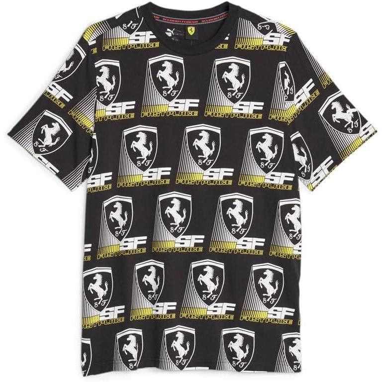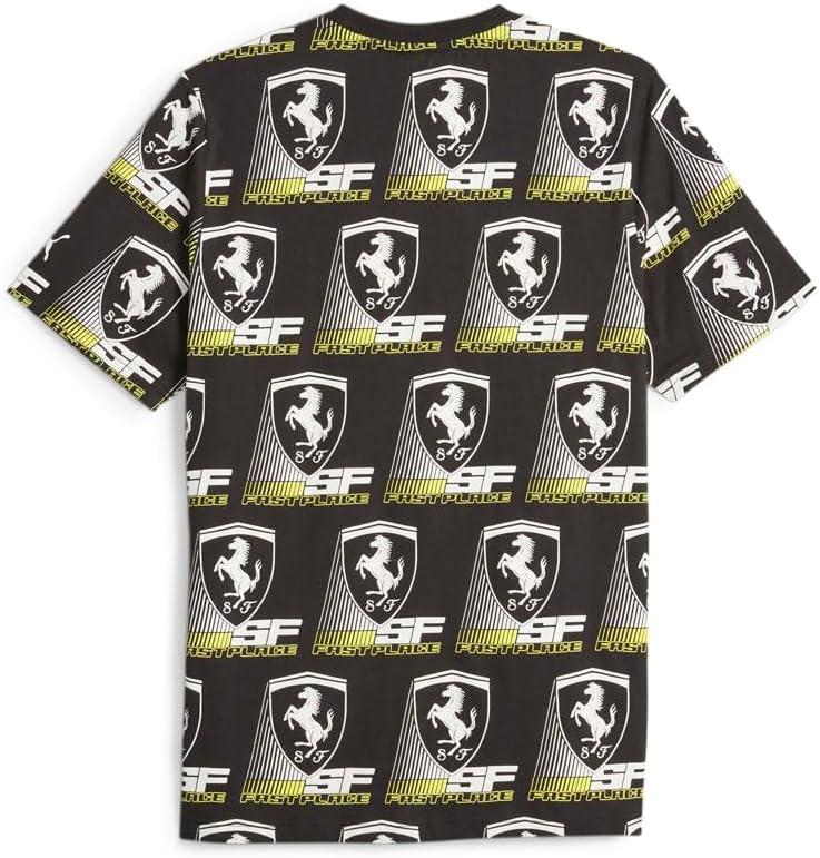 PUMA Mens Scuderia Ferrari Race Graphic Crew Neck Short Sleeve Casual Tops Casual – Black(Puma Black-aop)