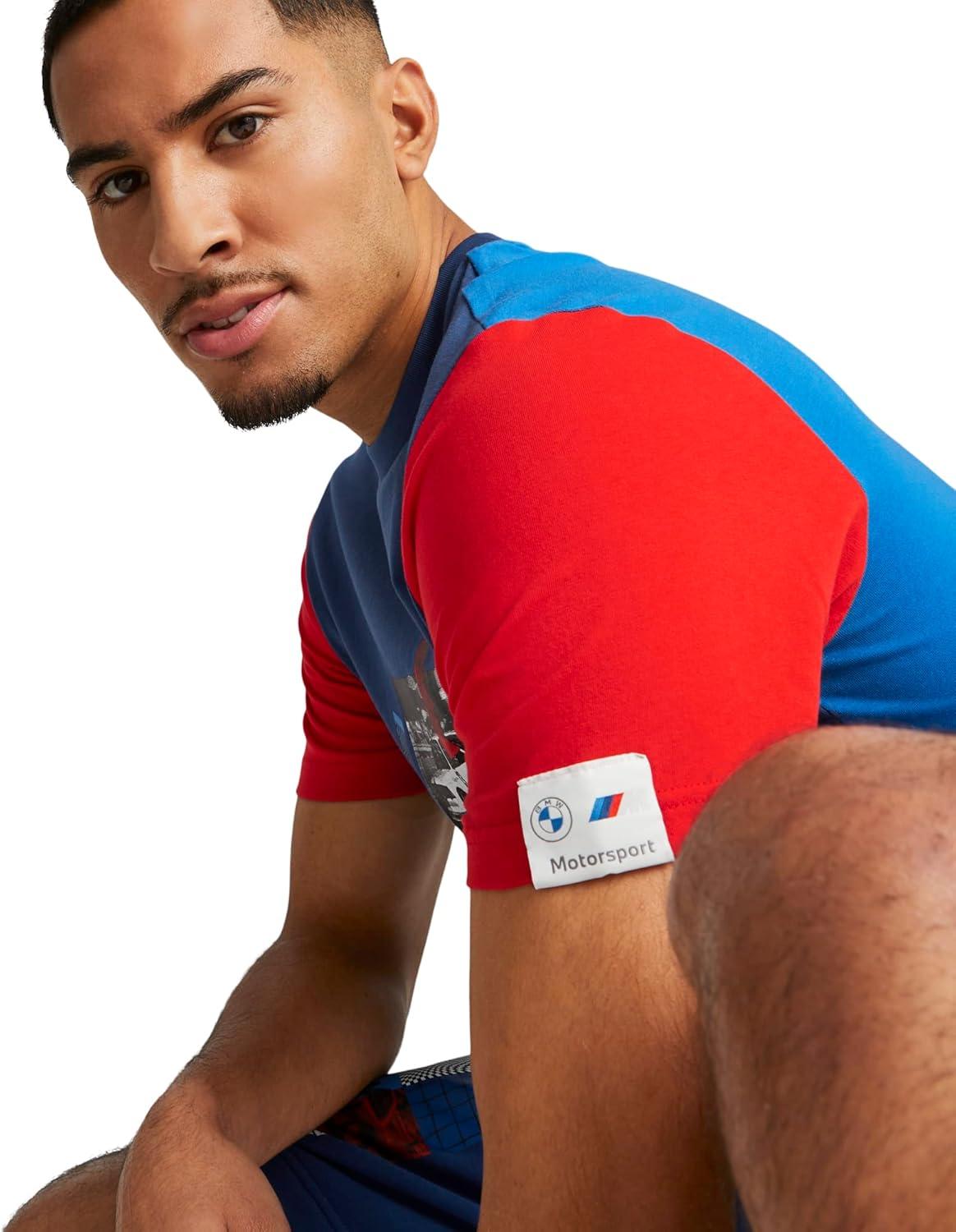 Bold BMW M Motorsport car graphics add a sporty edge to this comfy tee.