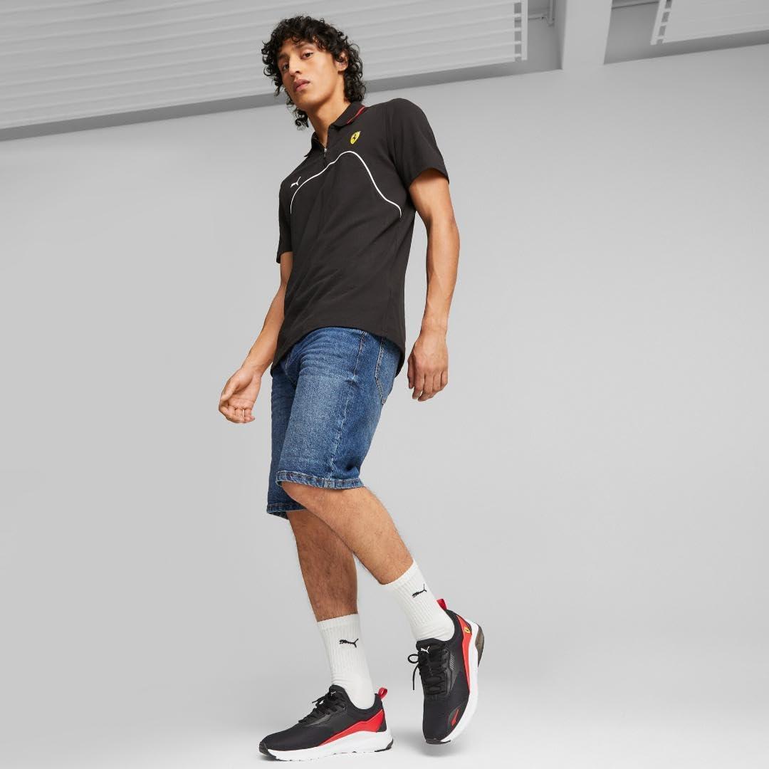 The PUMA x Scuderia Ferrari Race collaboration brings you a classic fit polo with a modern twist. The zip-up design is accentuated by contrast piping and features the PUMA Cat Logo and Scuderia Ferrari shield on the chest.