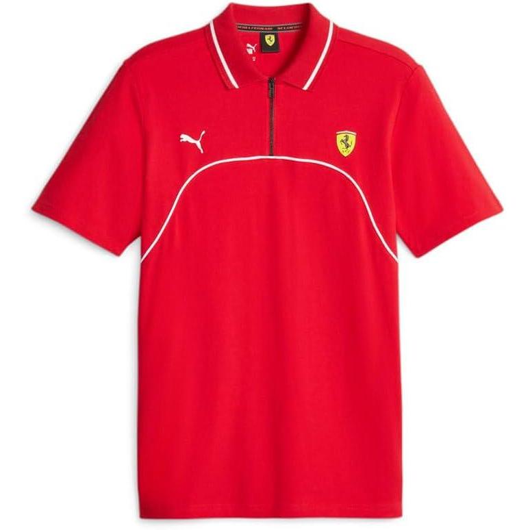The PUMA x Scuderia Ferrari Race collaboration brings you a classic fit polo with a modern twist. The zip-up design is accentuated by contrast piping and features the PUMA Cat Logo and Scuderia Ferrari shield on the chest.