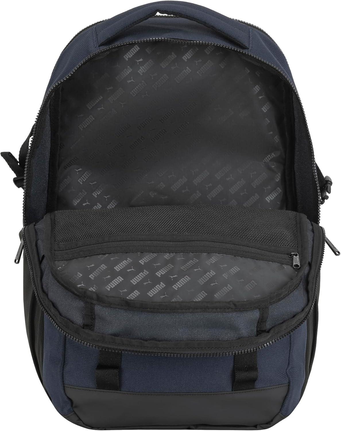 FEATURES: Designed for convenience and organization, the PUMA Range Backpack includes adjustable padded straps, a padded back, and multiple compartments. It features an exterior zip pocket, water bottle pockets, an item organizer pocket, and dual interior compartments, all while keeping your laptop safe in its dedicated sleeve.