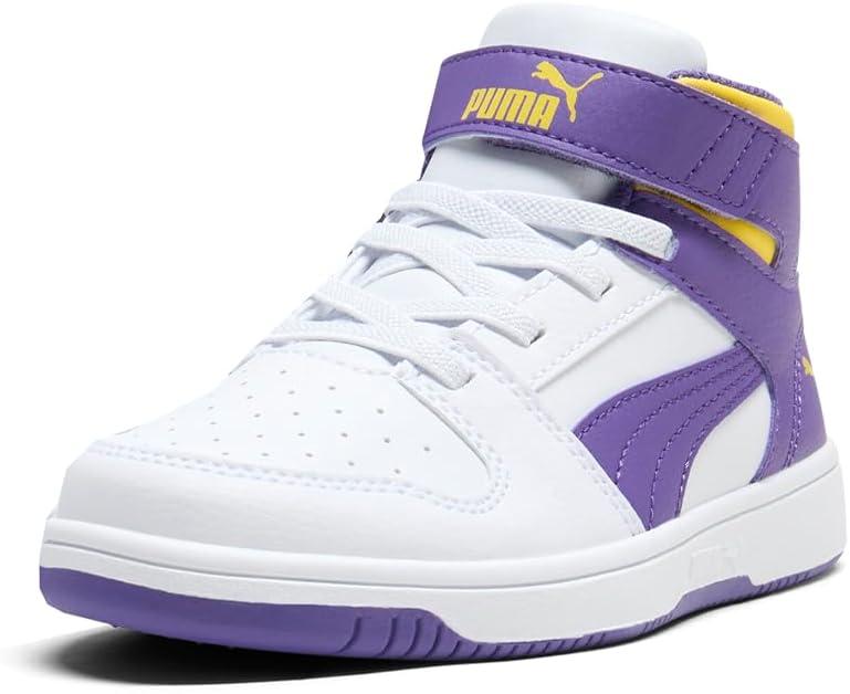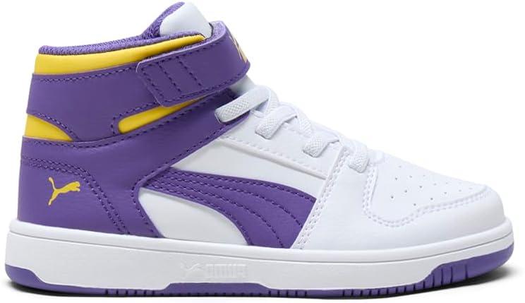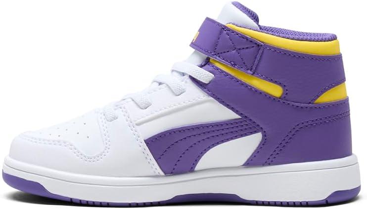PUMA Toddler Boys Rebound Layup Sl V Slip On Sneakers Shoes Casual – White(Puma White-team Violet-pelé Yellow)