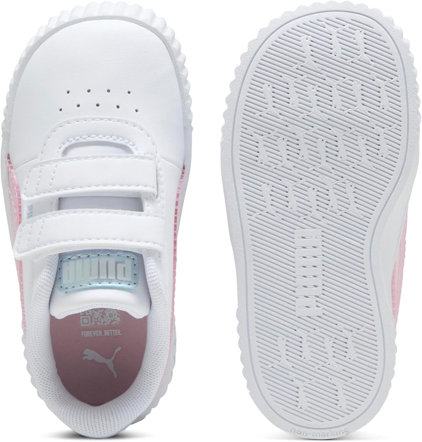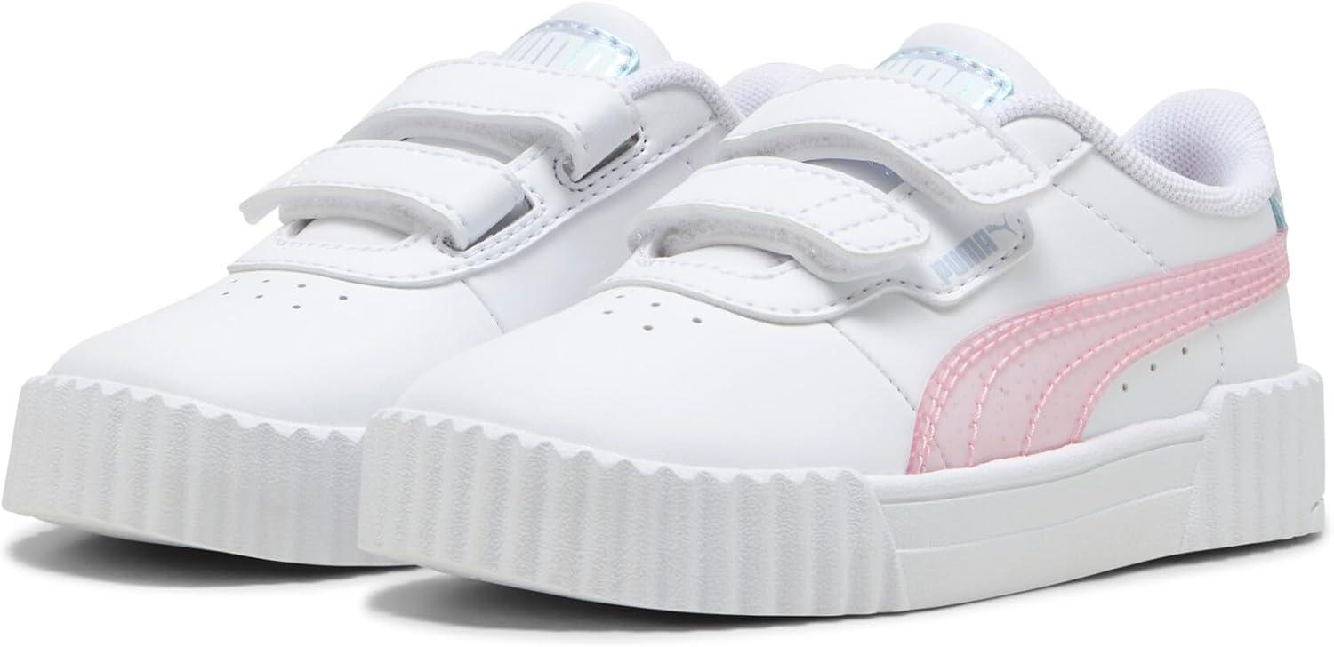 PUMA Unisex-Child Carina Hook and Loop Sneaker(Puma White-rose Mauve-cool Weather)