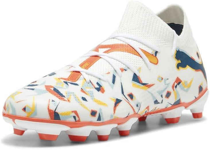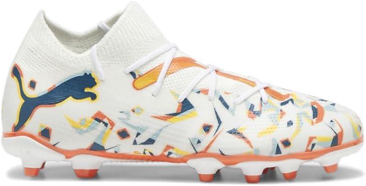 PUMA Unisex-Child Future Match Firm Artificial Ground(Puma White-ocean Tropic-turquoise Surf-hot Heat-sun Stream)
