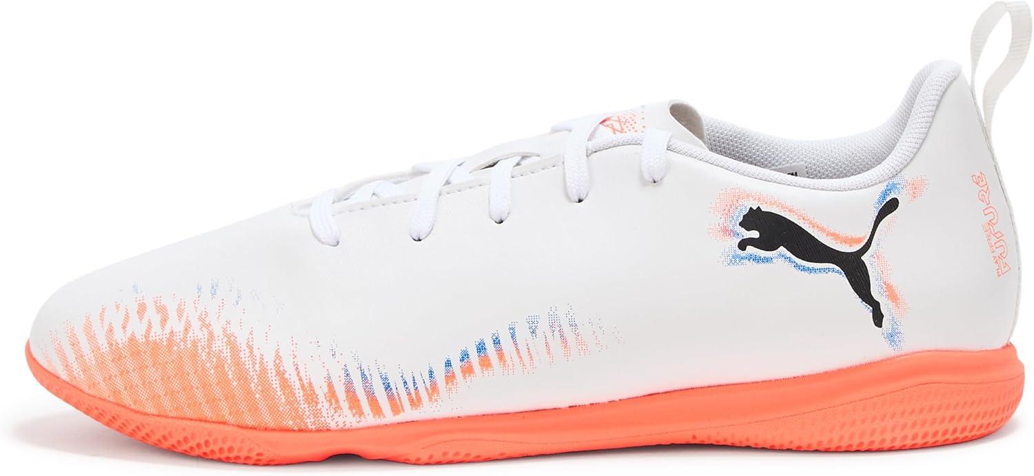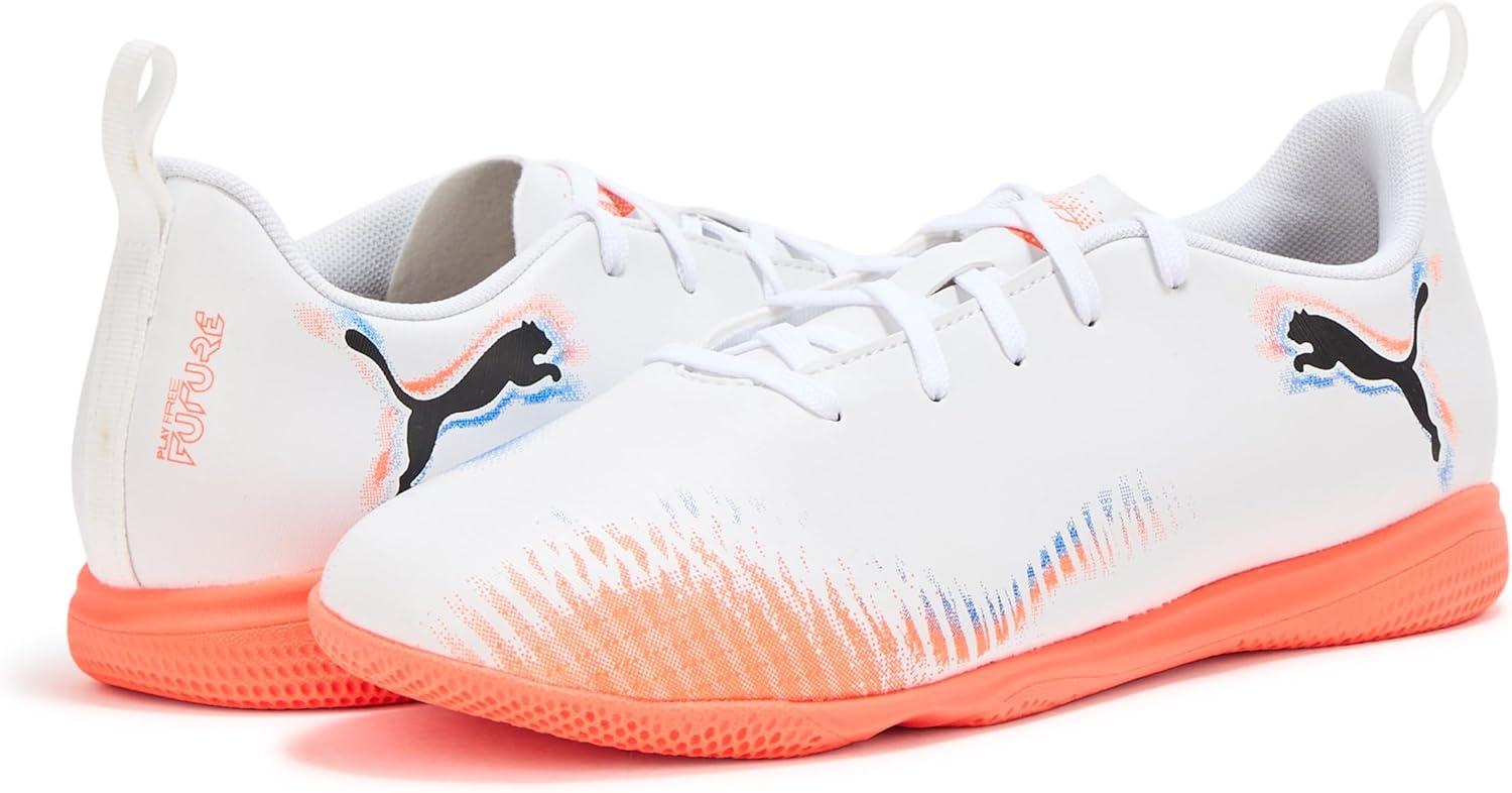 Get your little one soccer ready with the PUMA Kids Future Play Indoor Training soccer shoes (Little Kid/Big Kid). Ultra supportive mesh and soft synthetic upper. Textile lining. Rubber insole. Optimized engineered 3D textures at key contact zones for enhanced ball grip and control. Round toe. Slip-on trainers. Laced-up closure. Slight heel. Signature cat on toe and insole. Rubber midsole and outsole. Weight of footwear is based on a single item, not a pair.