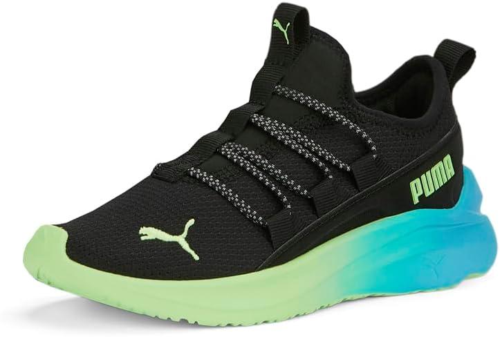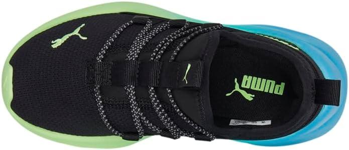 PUMA Unisex-Child One4all Slip on(Black-lime-aqua)