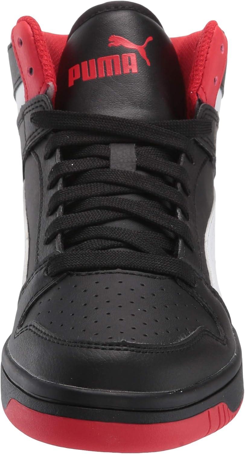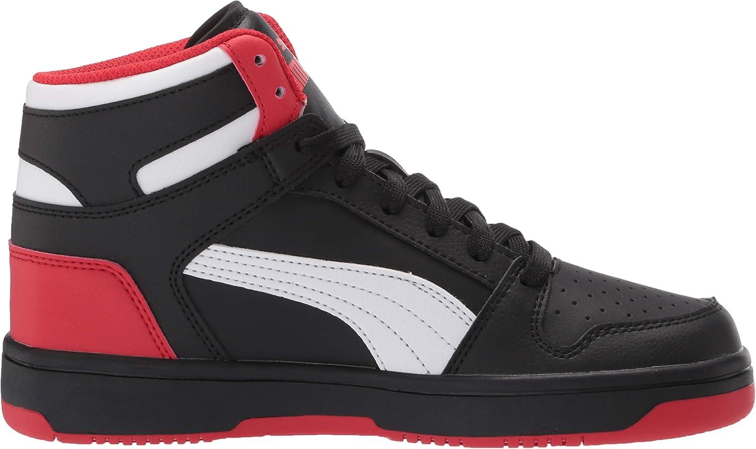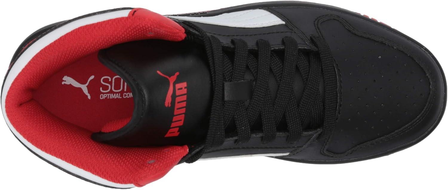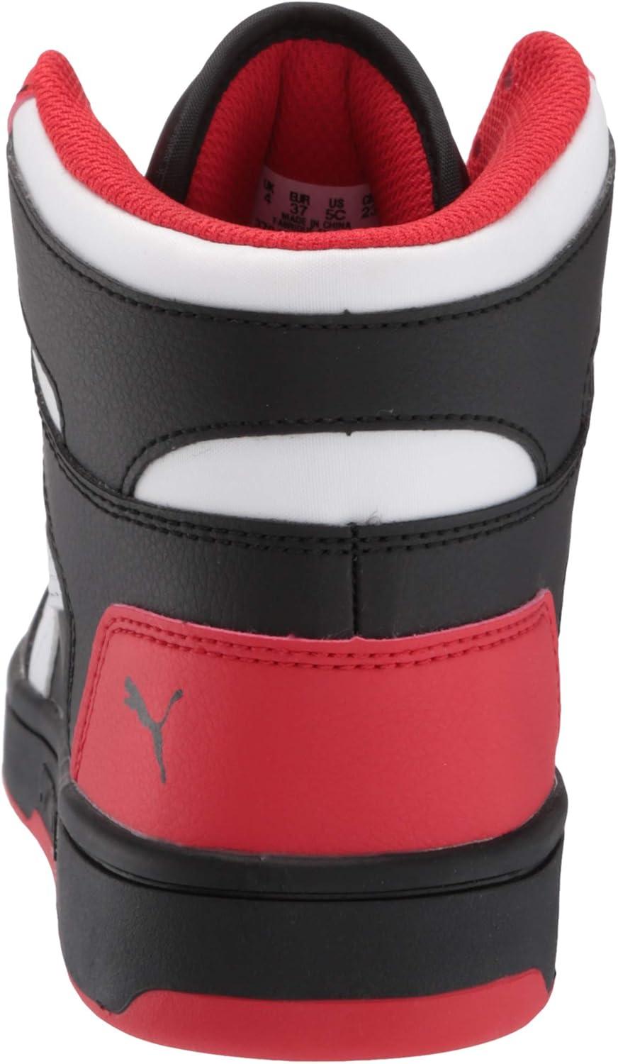 Puma Unisex-Child Rebound Layup Mid Shoes(Puma Black-high Risk Red-puma White)