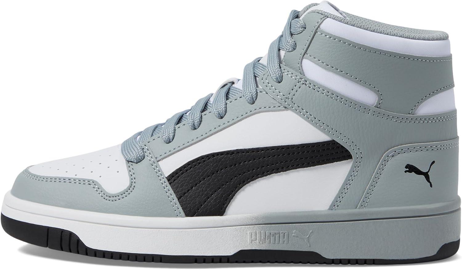 Puma Unisex-Child Rebound Layup Mid Shoes(Puma White-puma Black-cool Mid Gray)
